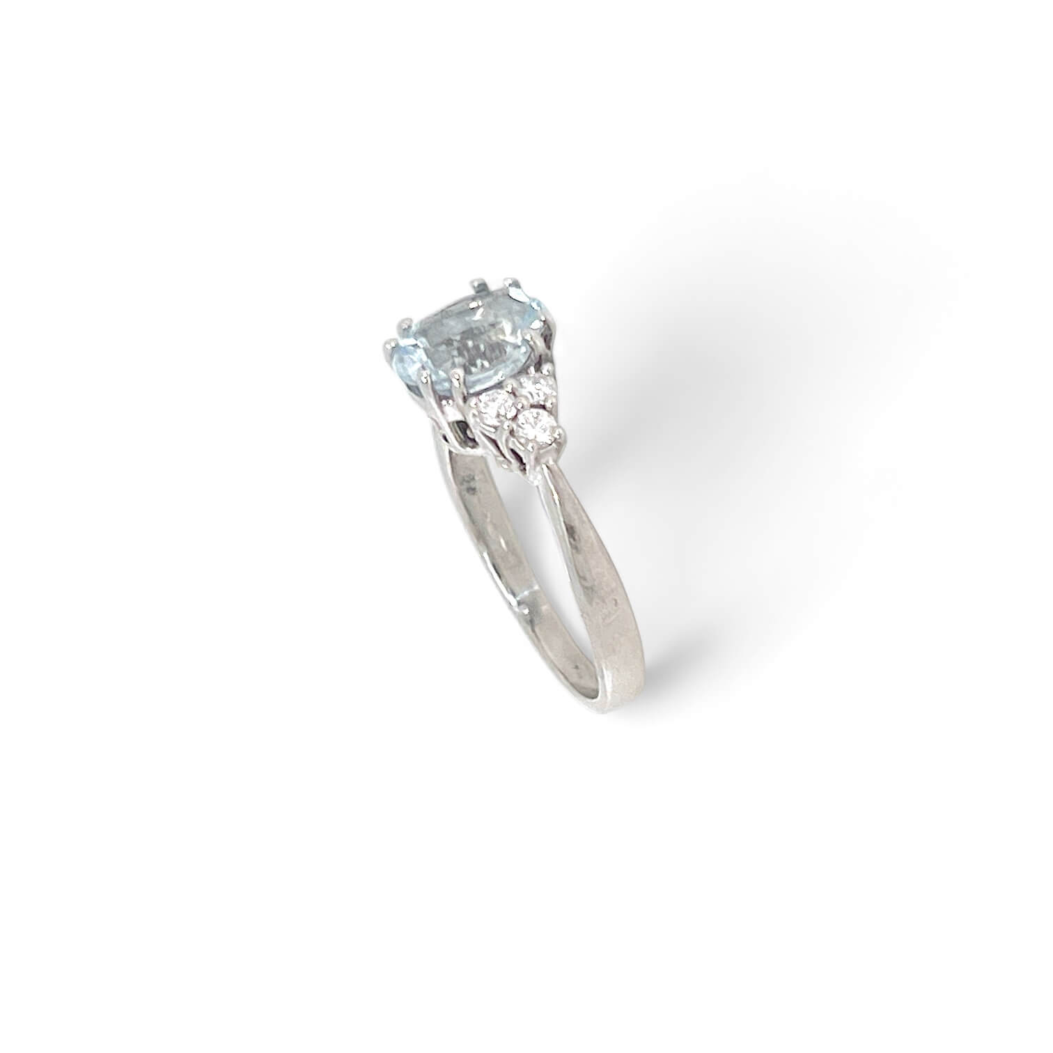 Aquamarine ring and diamonds Cipolla dal 1950 Gioiellieri, handcrafted; Frame in white gold 750% 18 kt, Diamonds brilliant cut weight 0.30 ct color F Purity VVS1 aquamarine weight 4.03 ct oval cut