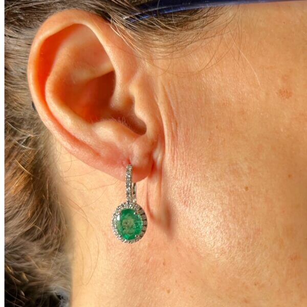 Earrings emeralds and diamonds Cipolla dal 1950 Gioiellieri COLLEZIOENE BELLE EPOQUE; Frame in white gold 750% 18 kt, Diamonds 0.39 ct color F purity VS1, Emeralds from Colombia carat 3.65 ct oval cut.