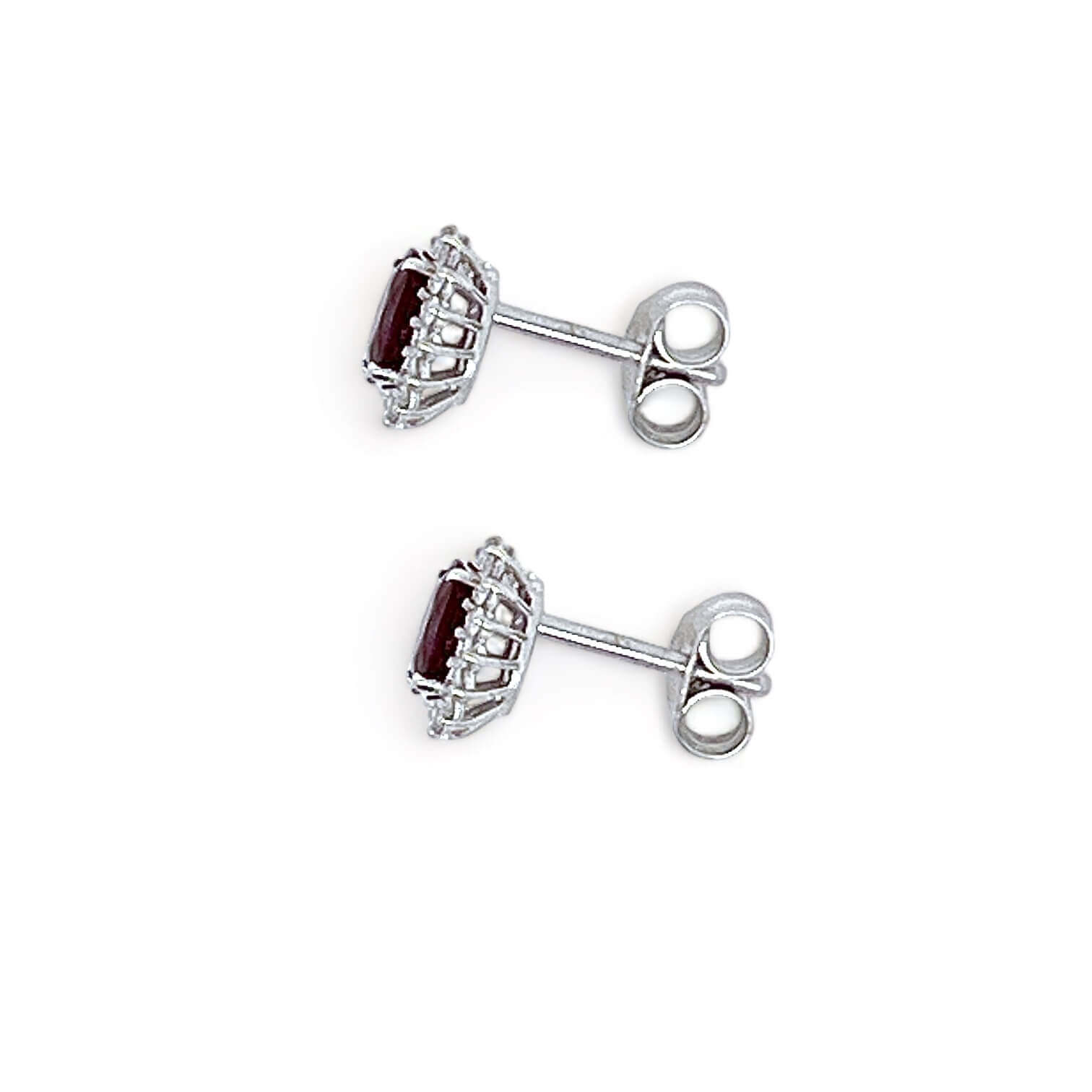 18 kt 750% white gold earrings, Cipolla craftsmanship since 1950 jewelers BON TON COLLECTION, rubies from India carat weight 1.24 ct oval cut, diamonds ct 0.25 brilliant cut clarity VS1 color F