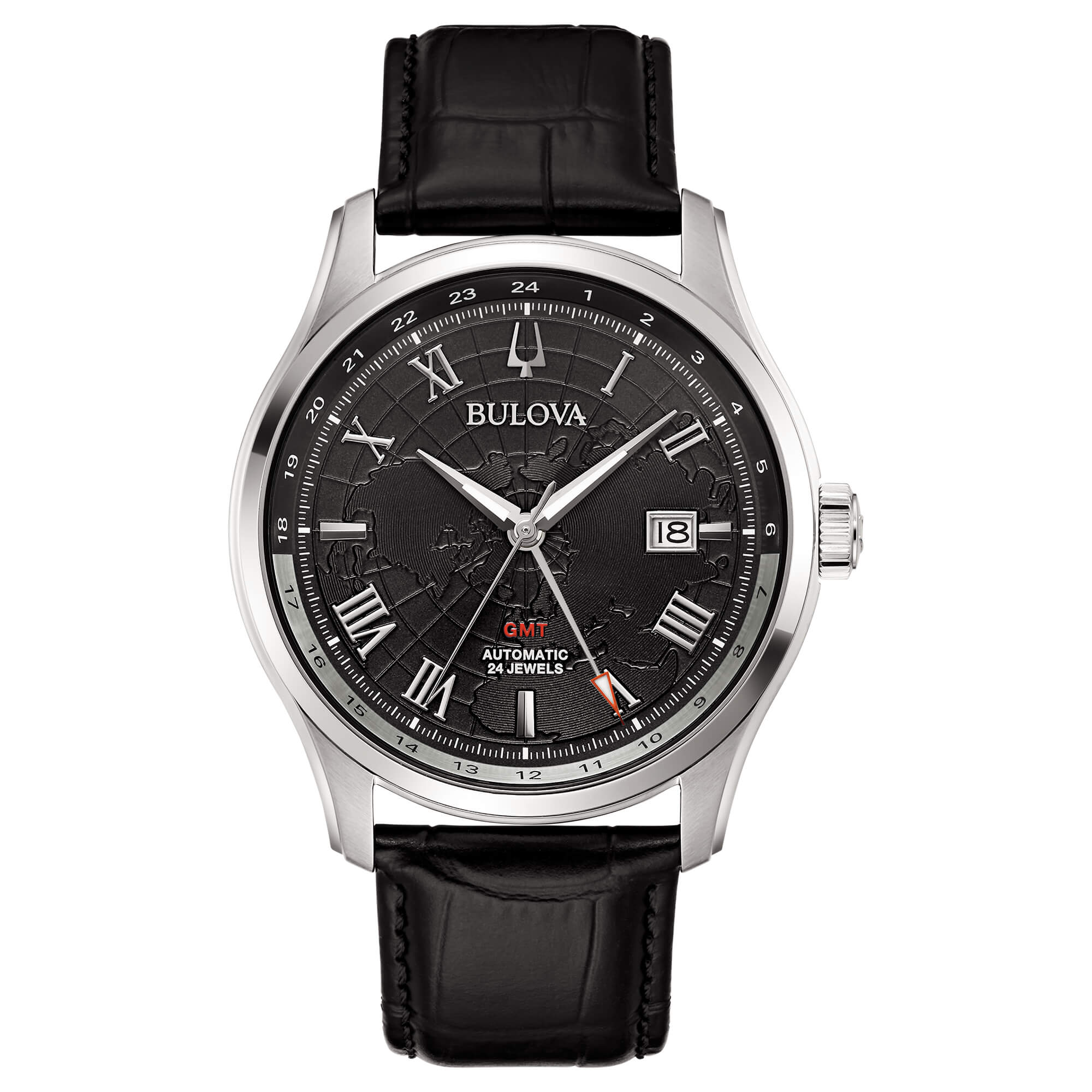 Explore the world with the Bulova Wilton GMT 96B387 Watch, a masterpiece of elegance and technology. Belonging to the prestigious “Wilton” collection, this watch features a striking black dial, enhanced by a world map with raised latitude and longitude details, creating a striking three-dimensional effect.
