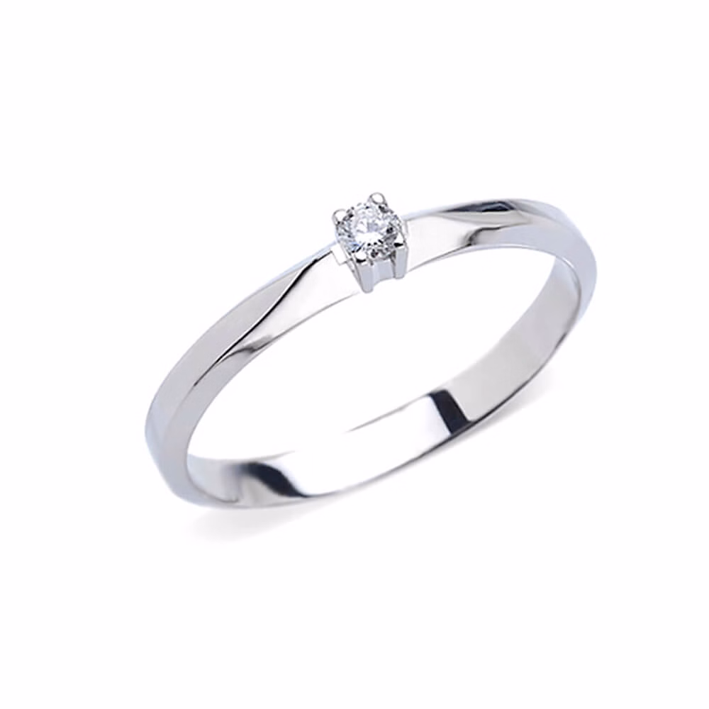 Solitaire ring of diamonds Cipolla dal 1950 Gioiellieri SOGNO collection, handcrafted; Frame in white gold 750% 18 KT, Diamonds weight 0.05 ct brilliant cut color F purity VS1