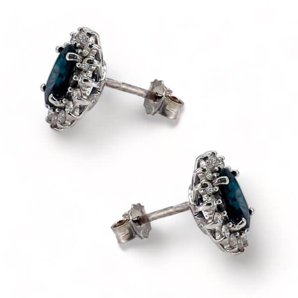 Earrings with sapphires and diamonds Cipolla dal 1950 Gioiellieri COLLECTION BON TON, handcrafted; Frame in white gold 750% sapphires from Sri Lanka oval cut weight 1.82 Ct Diamonds brilliant cut weight 0.45 Ct color F purity VS1