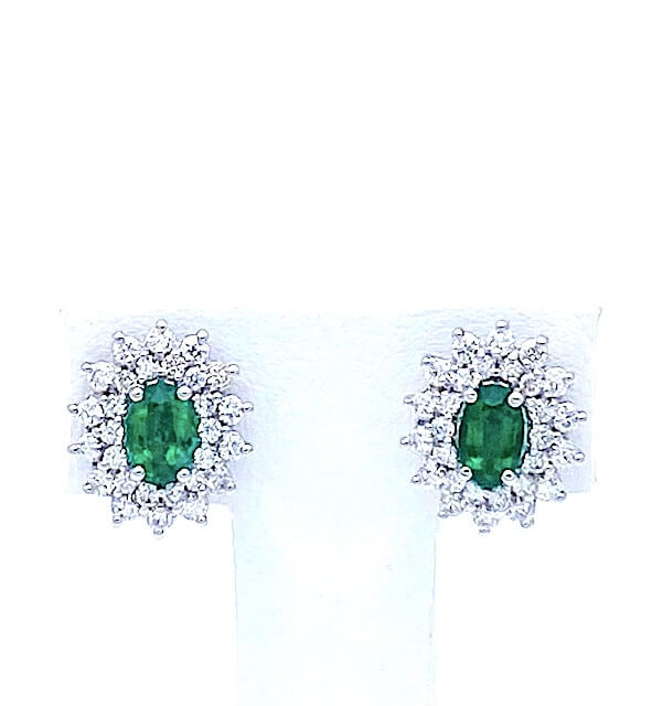Earrings emeralds and diamonds Cipolla dal 1950 Gioiellieri; Frame in white gold 750% 18 kt, Diamonds 0.78 ct color F purity VS1, Emeralds from Colombia carat 0.78 ct oval cut