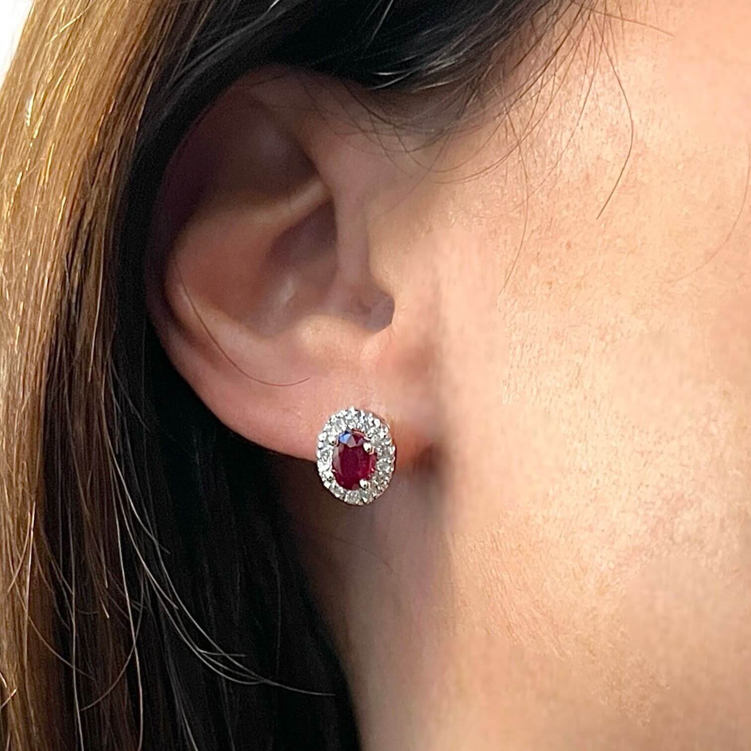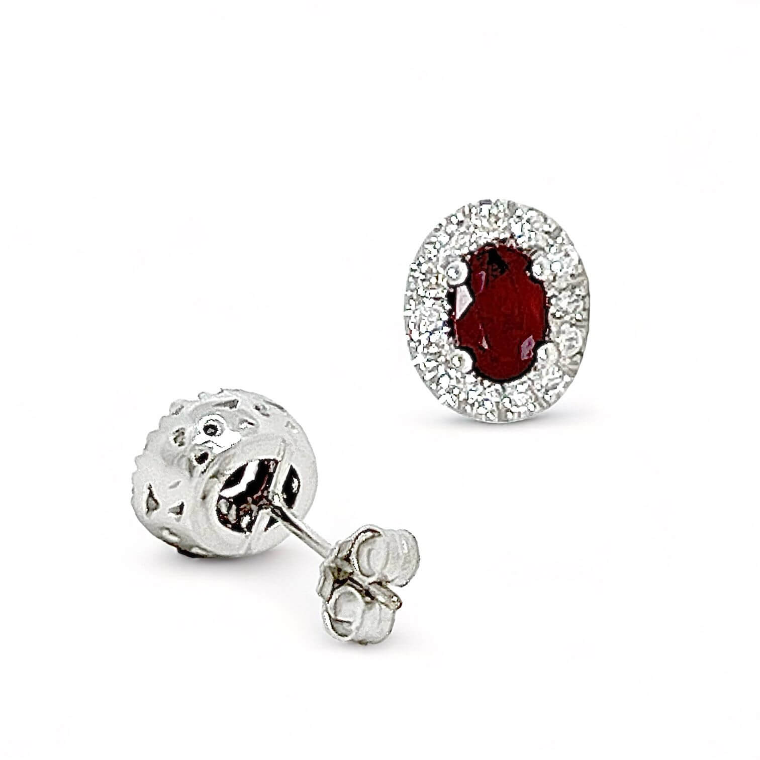 The 750% white gold setting offers an elegant frame, expertly setting two precious jewels: oval rubies from India, weighing 1.30 ct, and oval diamonds weighing 0.38 ct. The brightness of the diamonds, with F color and VS1 clarity, blends harmoniously with the liveliness of the rubies, giving the earrings an irresistible allure.