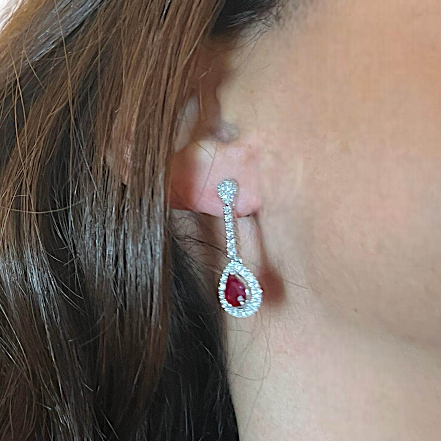 Ruby earrings and diamonds Cipolla dal 1950 Gioiellieri,handcrafted; Frame in white gold 750% 18 kt, Ruby 1.68 ct drop cut, Diamonds 0.56 ct brilliant cut purity VS1 color F