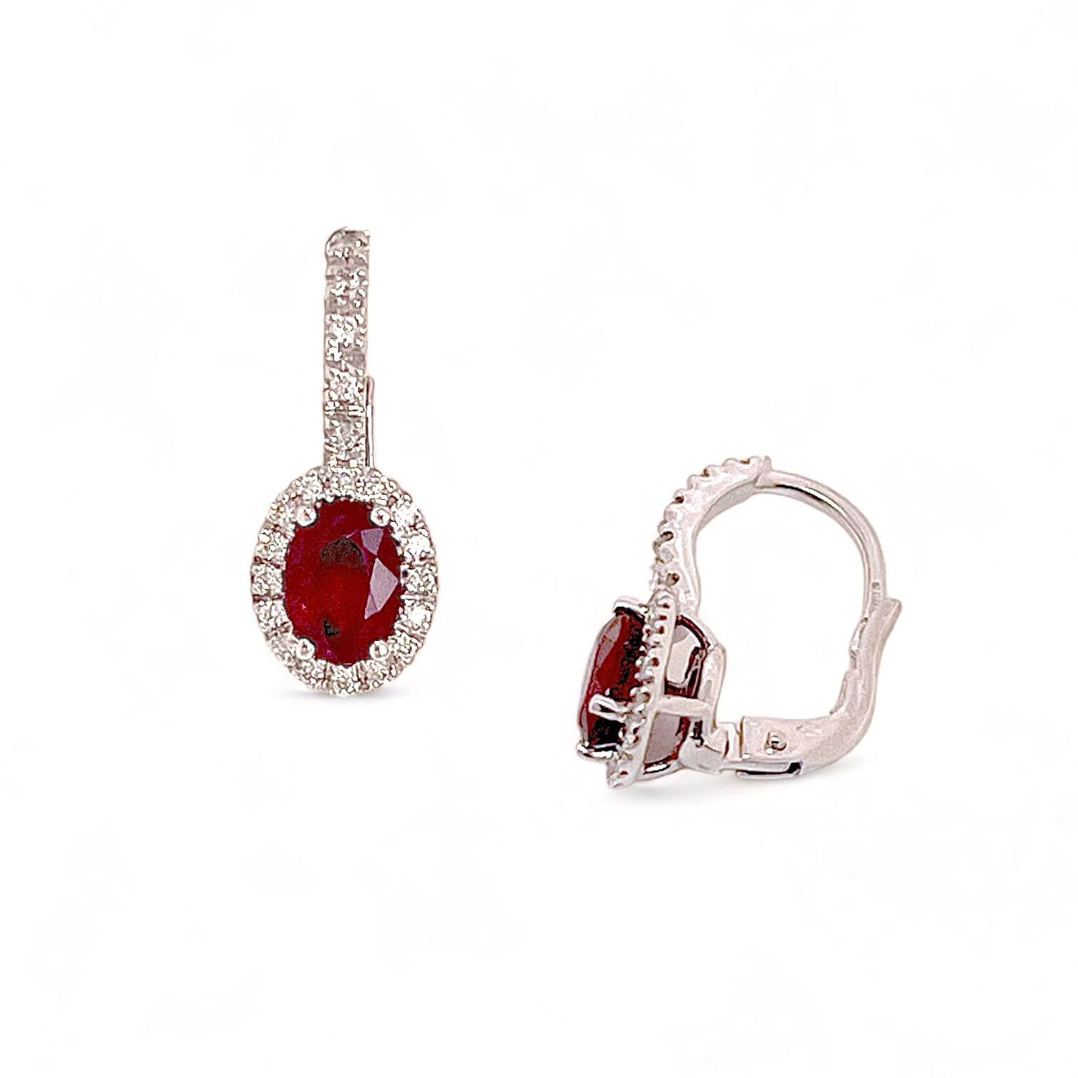 The 750% white gold setting lends timeless elegance, creating an excellent setting for the 2.06 ct oval rubies, with their vivid hue and enveloping shape. Accompanied by brilliant diamonds of 0.35 ct, with clarity VS1 and color F, the earrings exude a radiant brilliance and brilliance beyond compare.