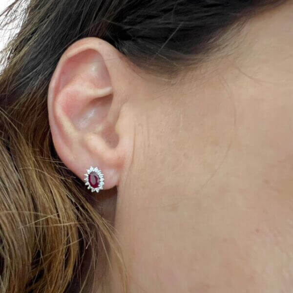 Earrings in white gold 750%,handmade Cipolla dal 1950 Gioiellieri, rubies ct 1.07 oval cut, diamonds ct 0.54 brilliant cut purity VS1 color F