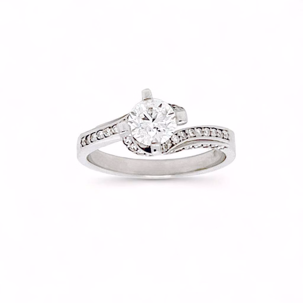 Solitaire ring white gold 750% central diamond 0.80 ct color G/SI CERTIFIED IGI LASER ENGRAVING diamond outline 0.30 ct color G/s1 Art.AN1707