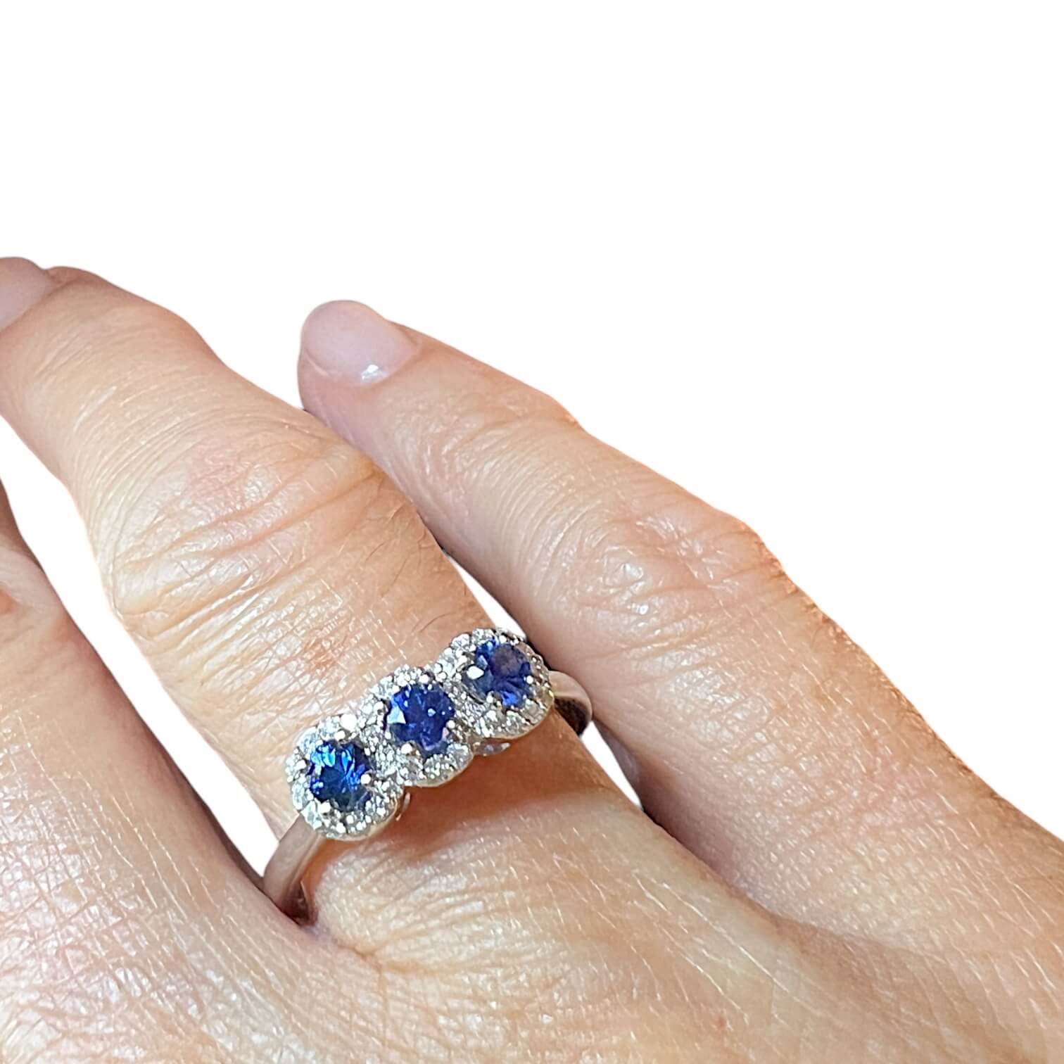Sapphire and diamond ring art. AN932 from the BELLE EPOQUE collection, in 18kt white gold. A unique jewel adorned with precious natural blue sapphires and brilliant diamonds, signed Cipolla dal 1950 Gioiellieri.