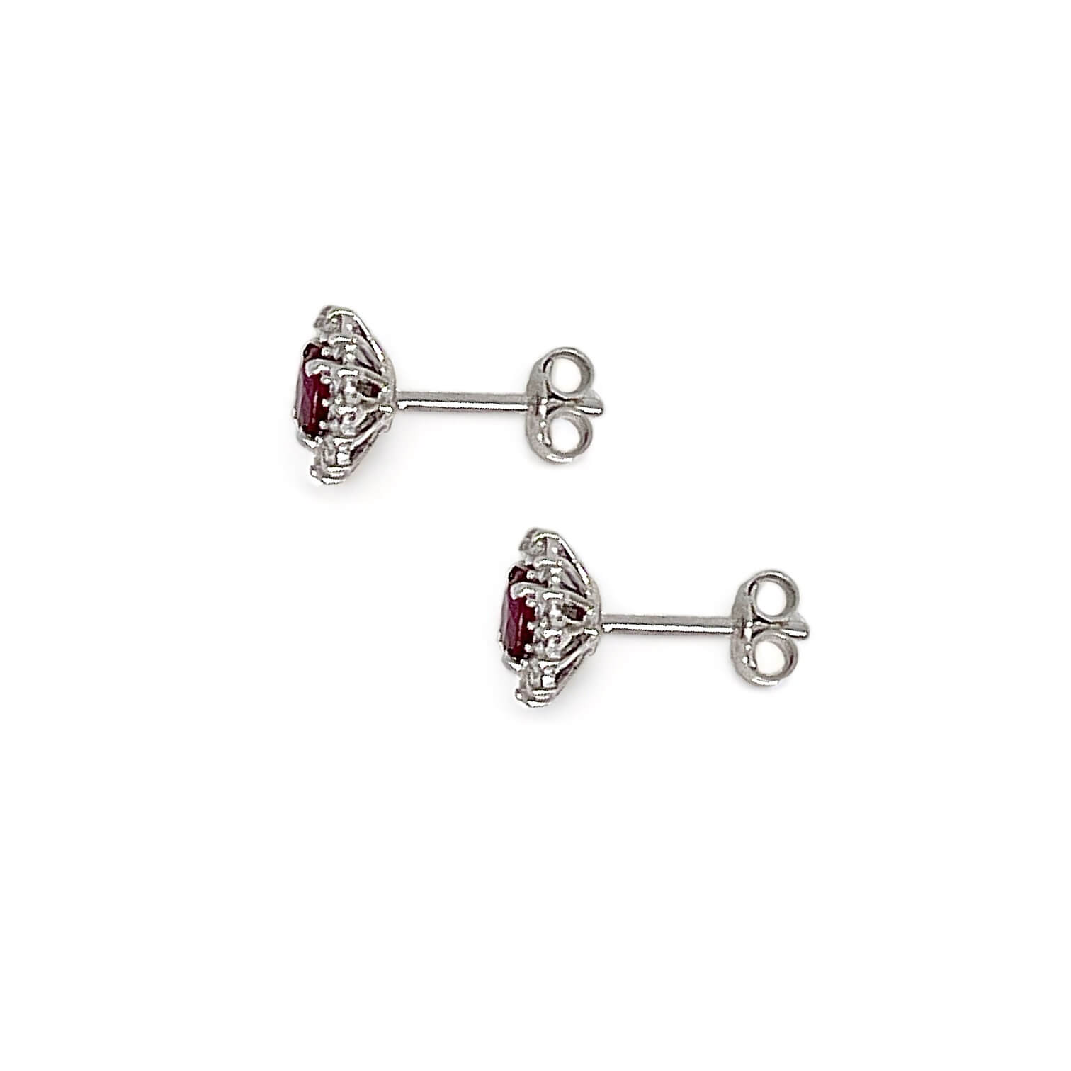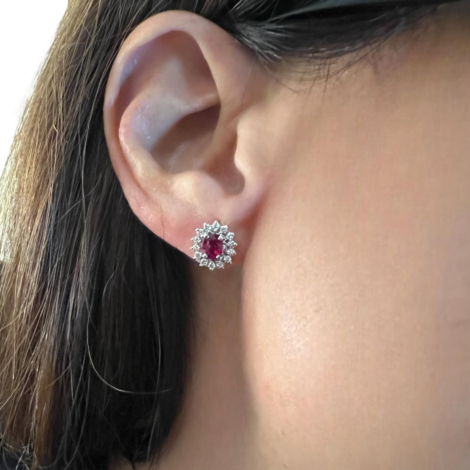 Earrings in white gold 750%, artisanal processing Cipolla dal 1950 Gioiellieri BON TON COLLECTION, rubies ct 0.68 cut oval diamonds ct 0.24 cut round brilliant purity VS1 color F art.OR505