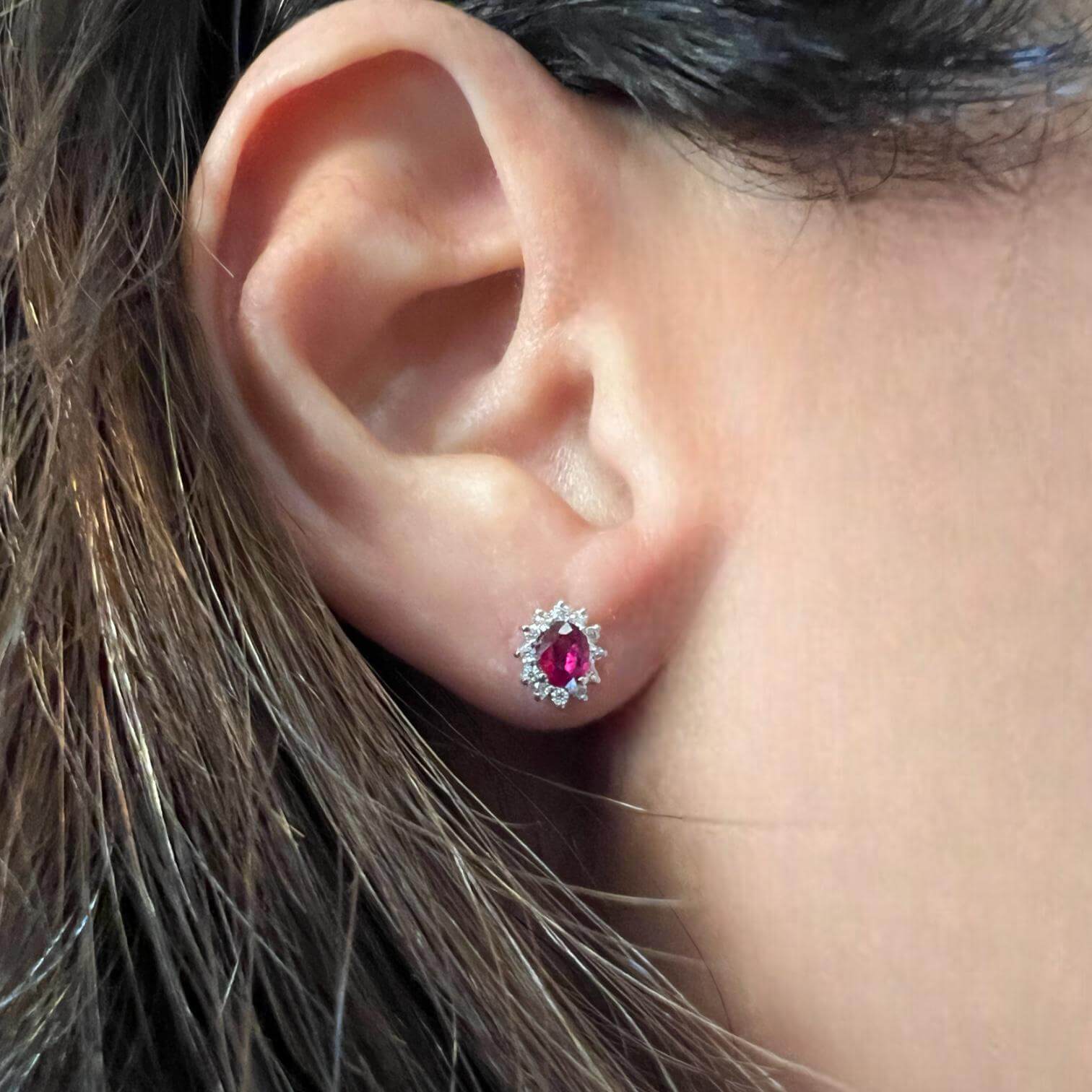 Earrings in white gold 750%, artisanal processing Cipolla dal 1950 Gioiellieri, rubies ct 0.36 cut oval diamonds ct 0.20 cut round brilliant purity VVS1 color F