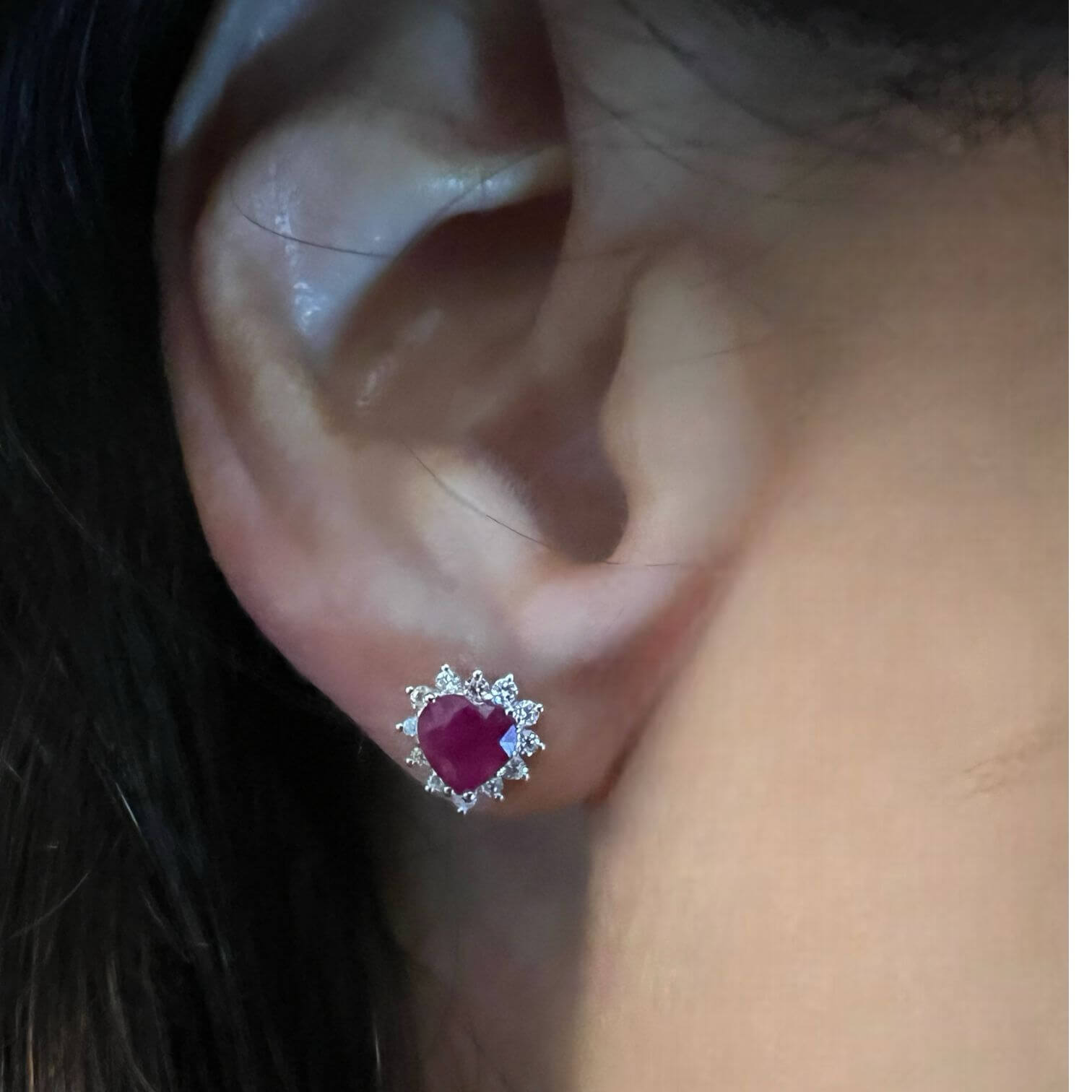 Rubies and diamonds earrings,handmade Cipolla dal 1950 Gioiellieri CUORE COLLECTION, white gold frame 750% 18 kt, Rubies ct 1.00 oval cut Diamonds ct 0.20 brilliant cut purity VS1 color F