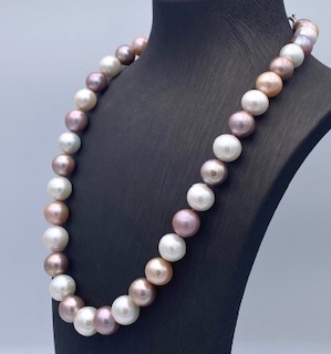 Round Necklace Cipolla dal 1950 Gioiellieri multicolored cultured pearl thread type Edison; Diameter mm 10-12 susta white gold 750% 18 kt