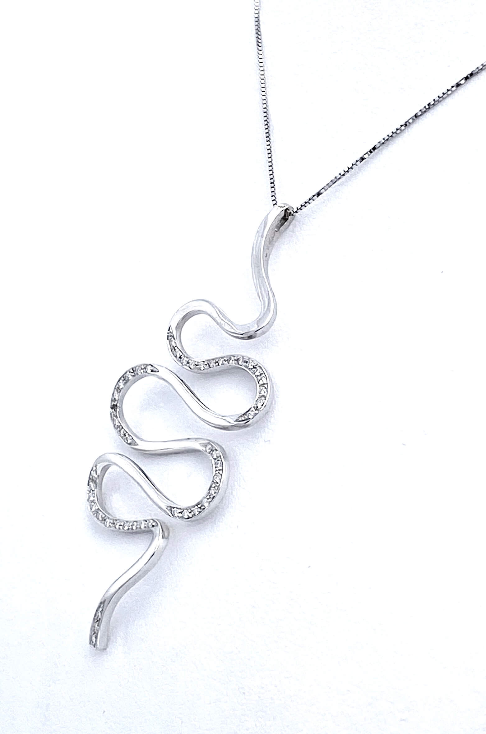 snake pendant Cipolla dal 1950 Gioiellieri, handcrafted; Frame in white gold 750% 18 kt, Diamonds 0.31 ct color F purity VVS2