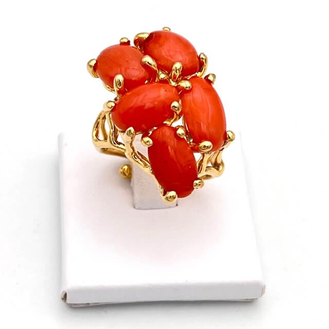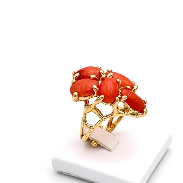 Mediterranean Coral Ring, 925% Silver Frame; Adjustable Size; Cipolla dal 1950 Gioiellieri Craft Jewelry