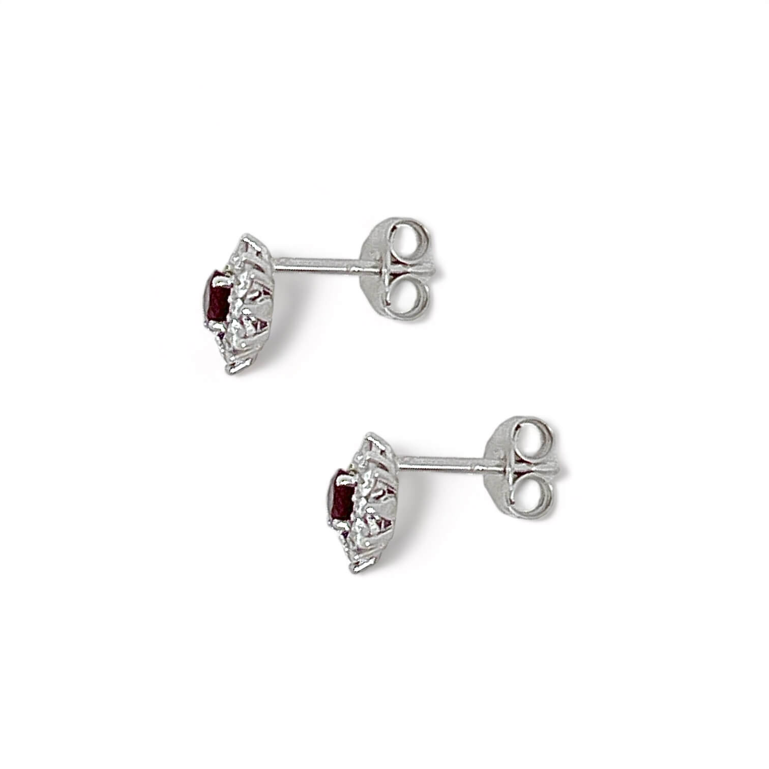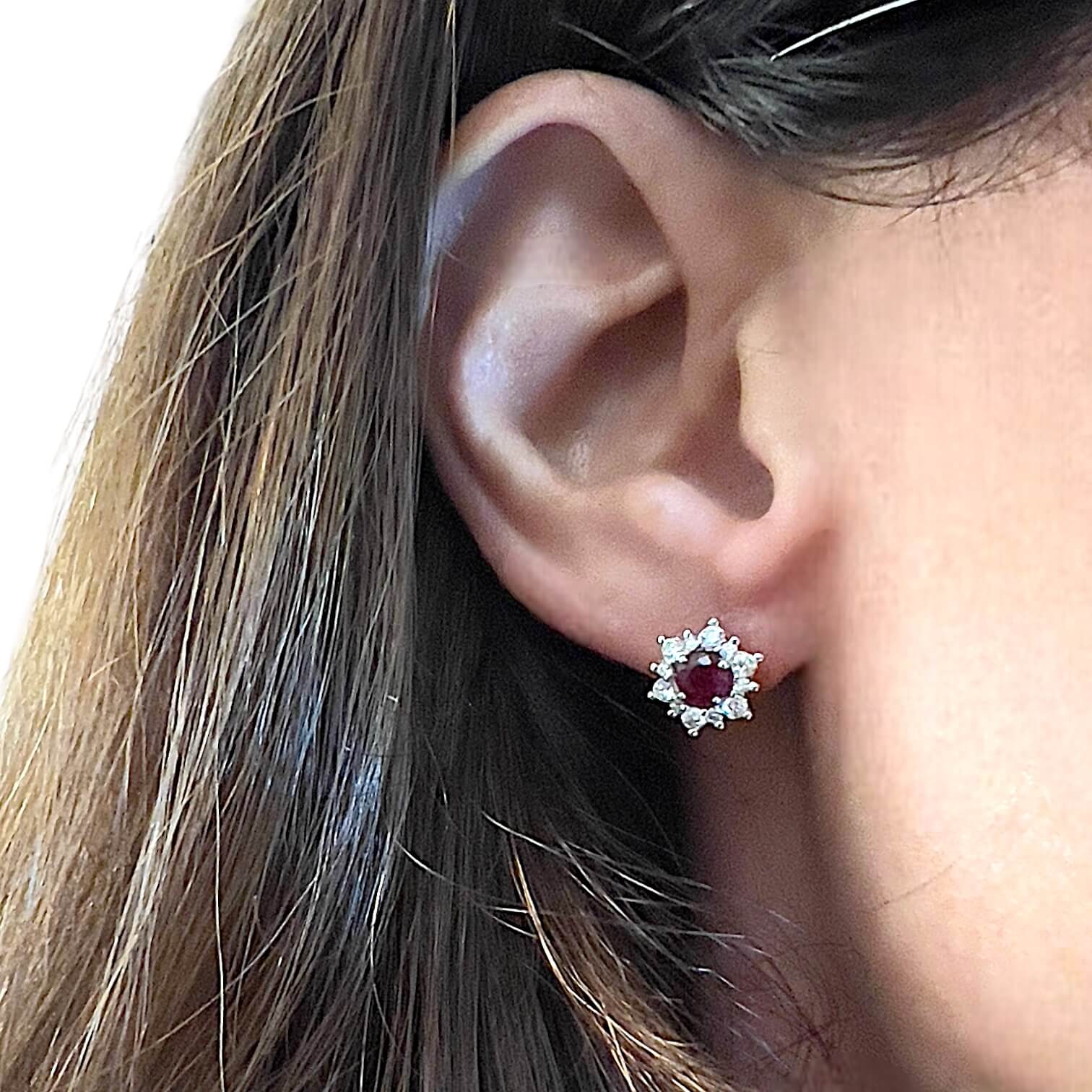 Rubies earrings and diamonds Cipolla dal 1950 Gioiellieri BON TON COLLECTION, handcrafted; Frame in white gold 750% 18 kt, Diamonds brilliant cut weight 0.38 ct color F purity VVS1, Rubies of Indian origin weight 0.57 ct round cut