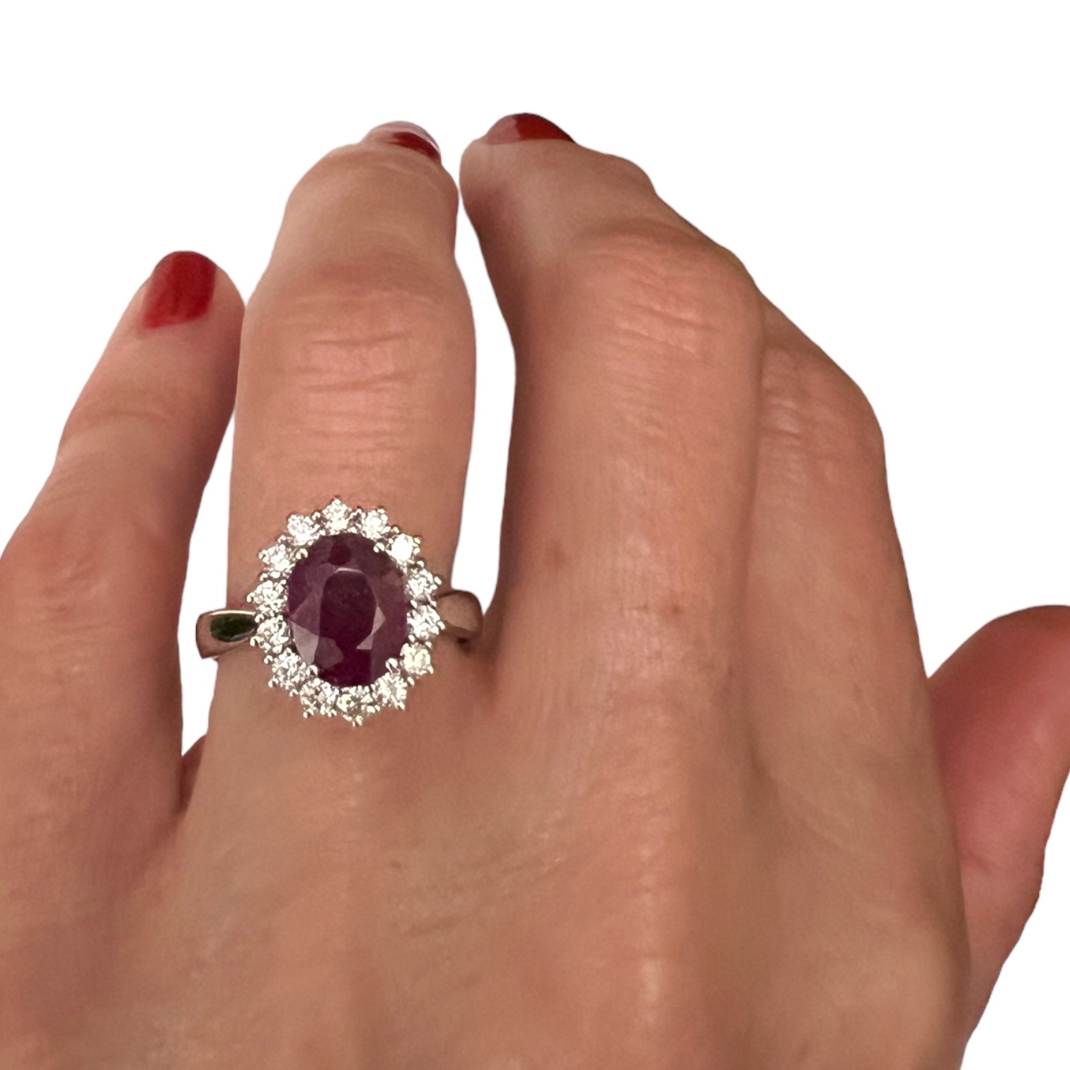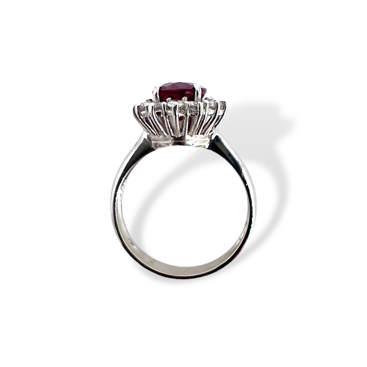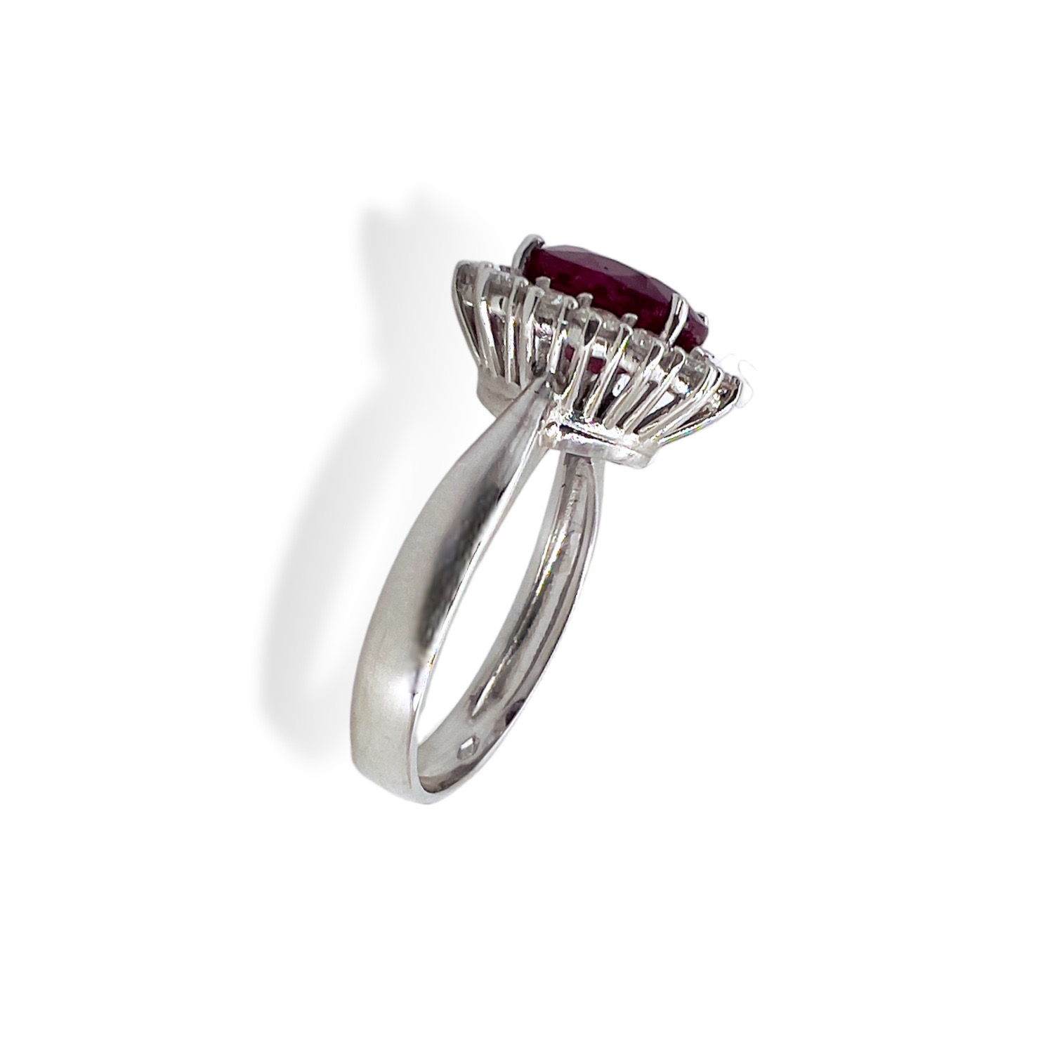Ring with ruby and diamonds Cipolla dal 1950 Gioiellieri BON TON COLLECTION, handcrafted, White gold frame 18 kt 750 %, Ruby 2.55 ct oval cut, Diamonds brilliant cut weight 0.53 ct color F purity SI1