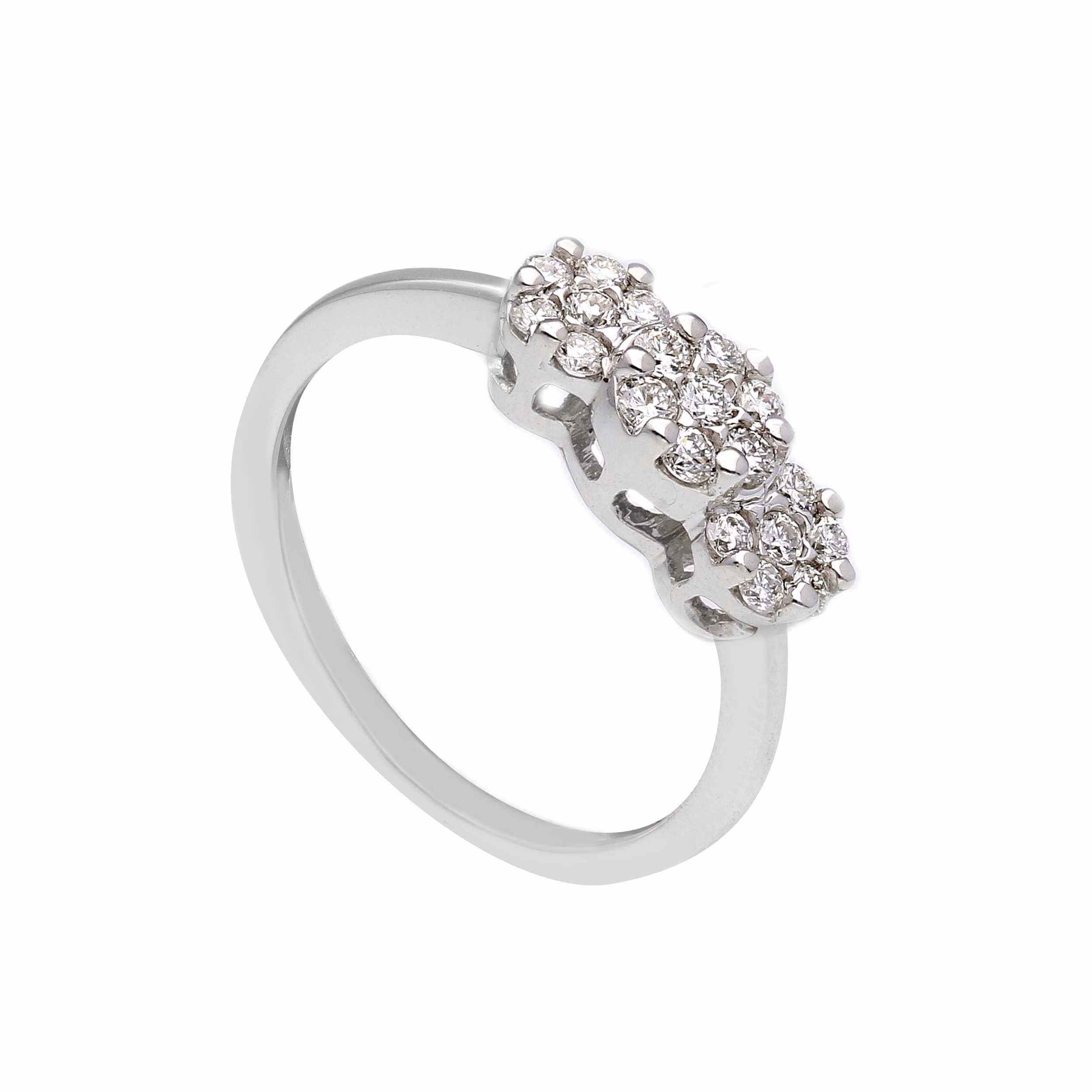 Trilogy diamond ring Cipolla dal 1950 Gioiellieri, Artisanal manufacturing; White gold 750% 18 kt setting Diamonds 0.48 ct color F VVS1 clarity brilliant cut