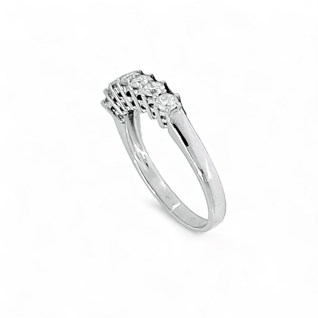 The 750% (18 KT) white gold setting embodies timeless elegance, creating a perfect stage for the expression of eternal love through diamonds. With a total carat weight of 0.55 ct, the brilliant-cut diamonds shine with F color and VS1 clarity, emitting an extraordinary light that captures attention and symbolizes clarity of feeling.