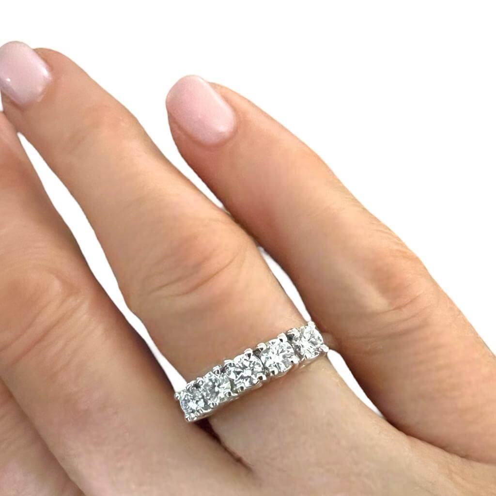 The Eternity Ring LOVE NOTE by Cipolla dal 1950 Gioiellieri is a symbol of timeless elegance. Crafted in 750% white gold, this jewel features an enchanting band design embellished with 1.30 ct diamonds, with an E color and VS1 clarity, creating a one-of-a-kind masterpiece.