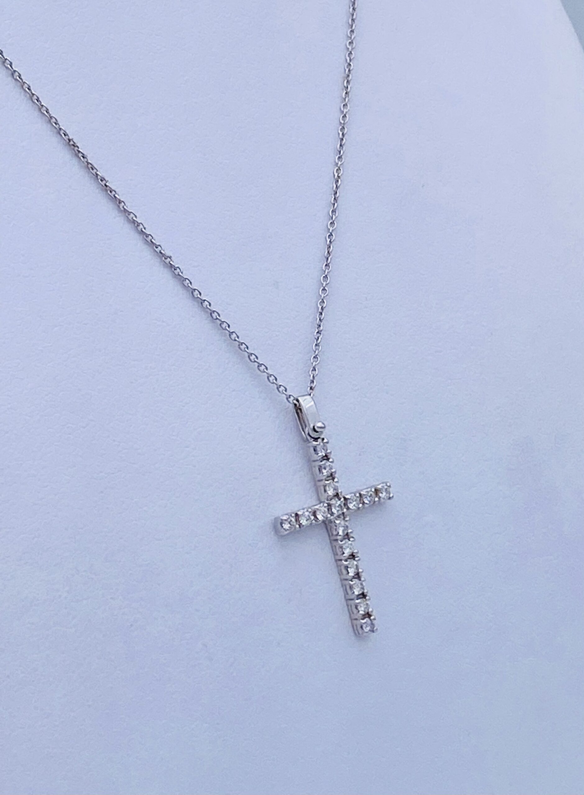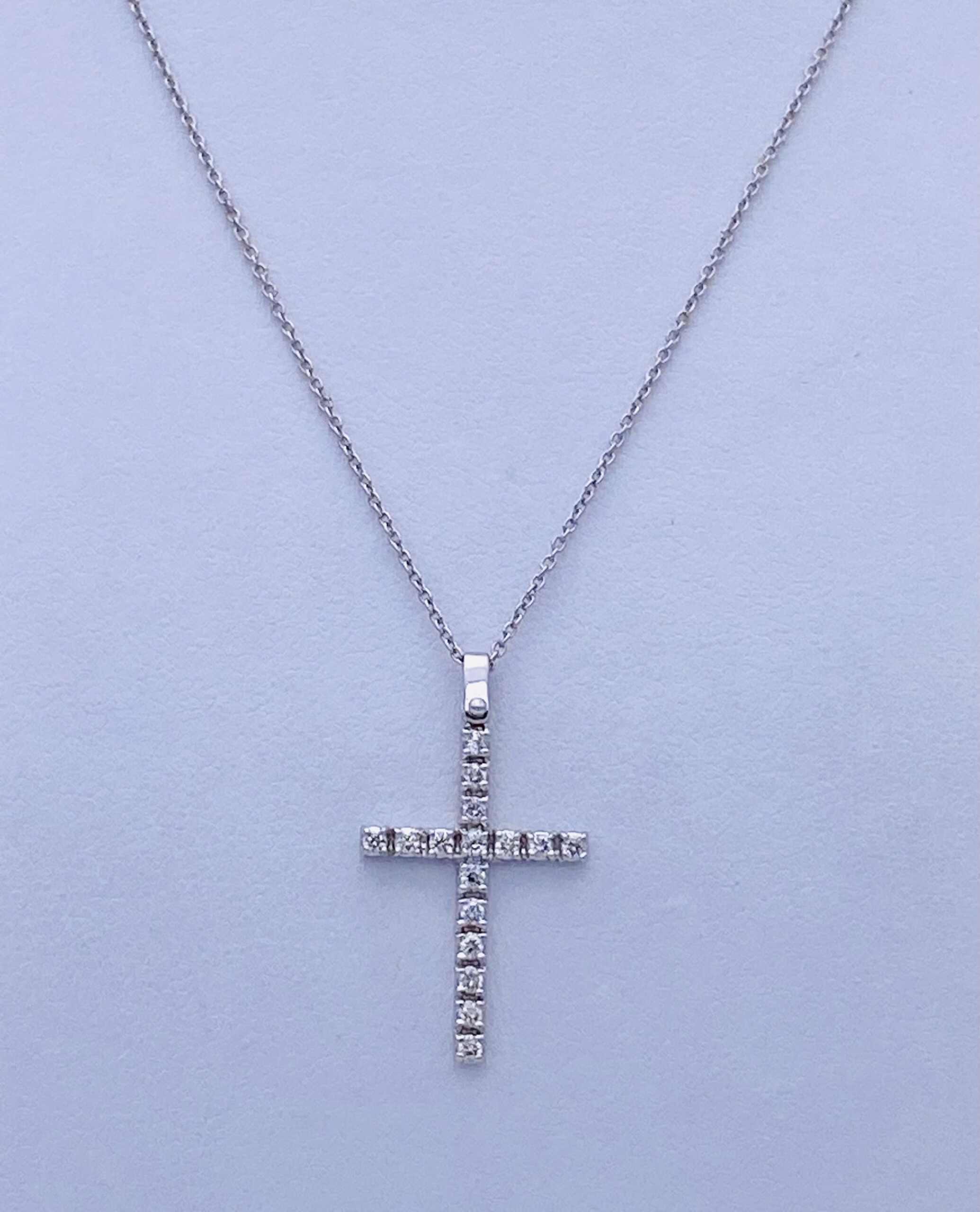 Cross pendant with diamonds Cipolla dal 1950 Gioiellieri, handcrafted; Frame in white gold 750% 18 kt, Diamonds brilliant cut 0.23 Ct color F purity VVS2