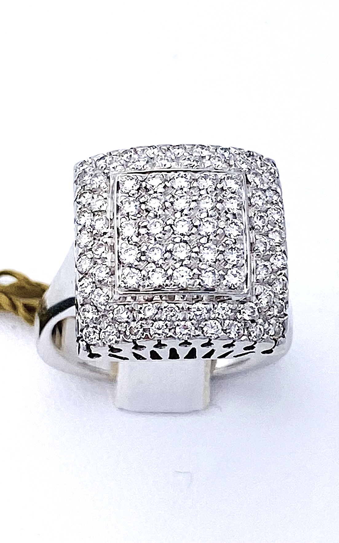 diamond pavé ring Handcrafted jewellers, White gold frame 750% 18 KT, Diamonds carat 2.00 ct brilliant cut color F purity VVS1