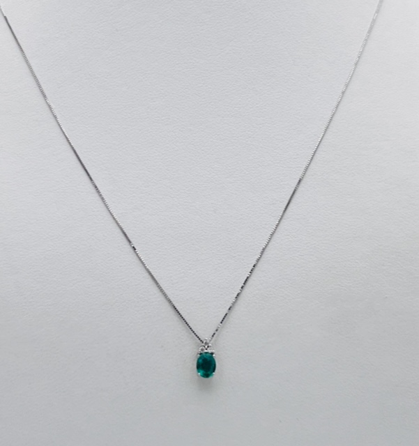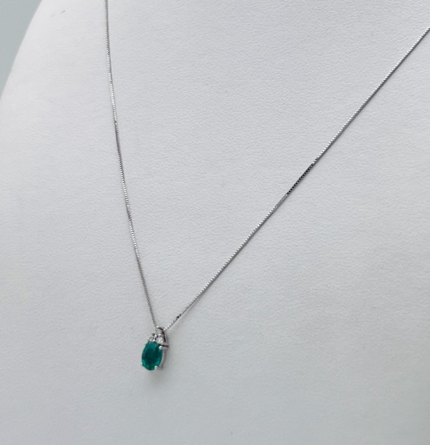 Emerald pendant and diamonds Cipolla dal 1950 Gioiellieri, handcrafted; Frame in white gold 750% 18 kt Diamonds brilliant cut 0.03 Ct color F purity SI1 Emerald oval cut weight 0.27 ct.