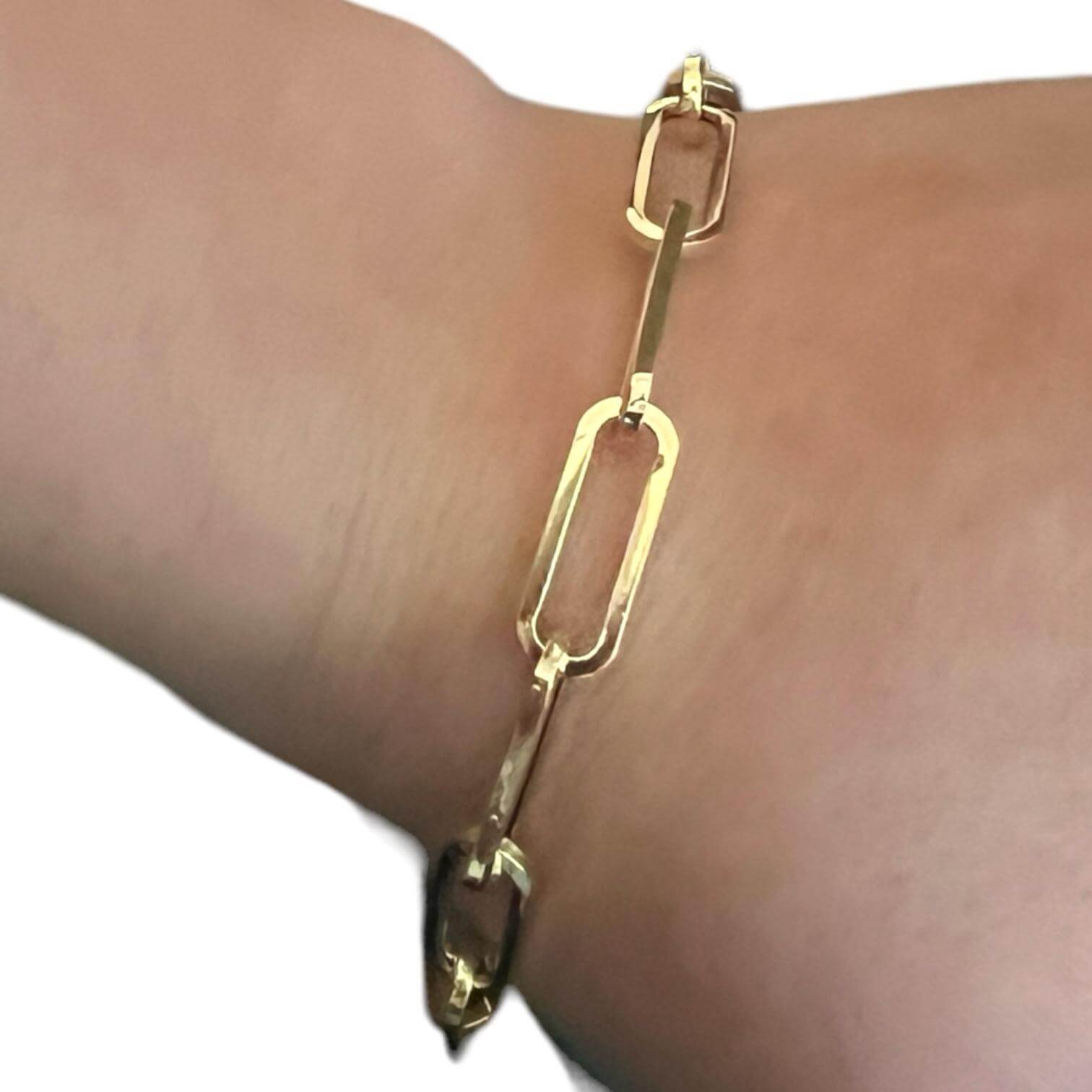 This bracelet, made with 750% 18kt yellow gold, is a celebration of purity and elegance. The chain link, worked with artisanal precision, gives the bracelet a feeling of lightness while fitting gracefully on the wrist. Weighing 3.93 grams, it is a slim and comfortable accessory to wear on any occasion.