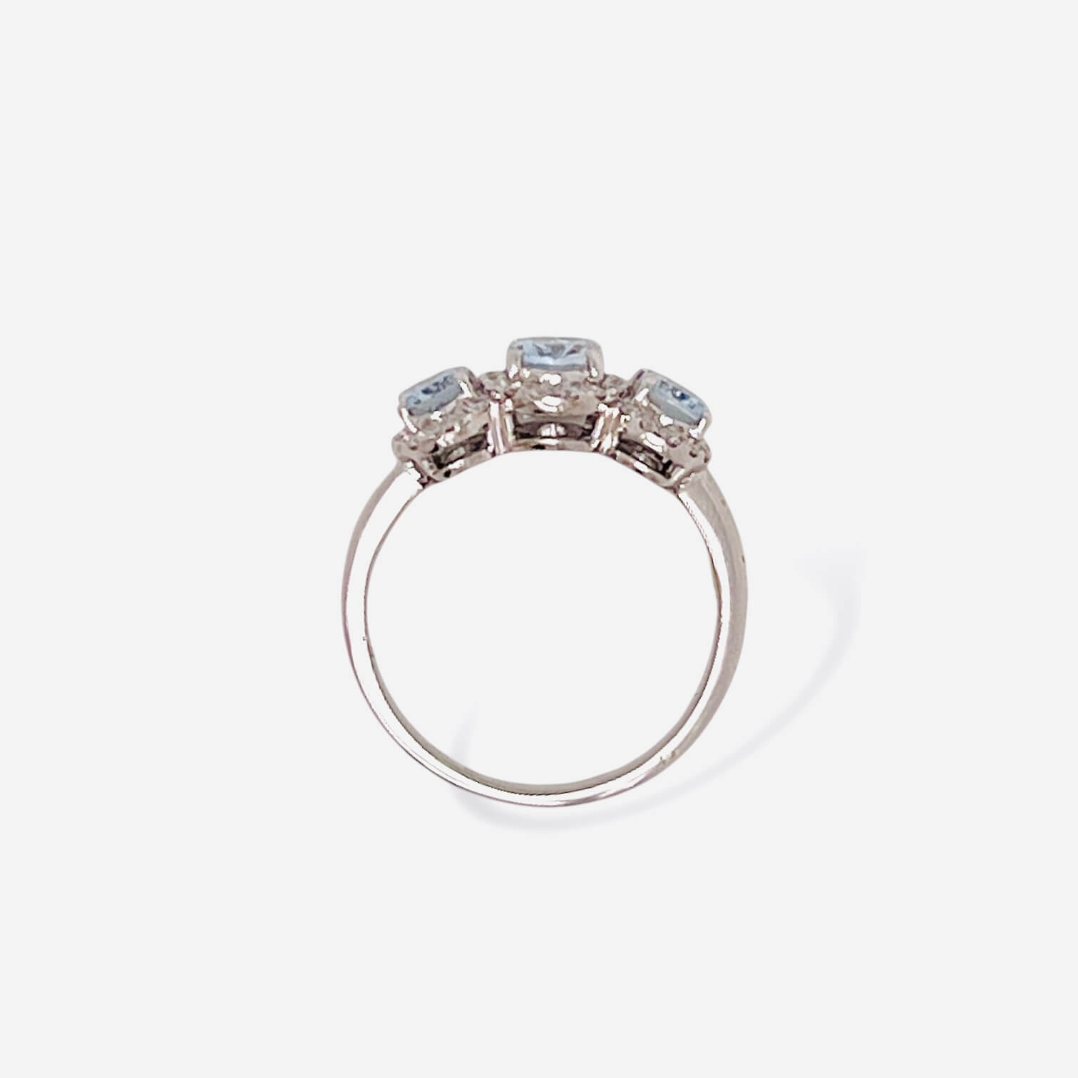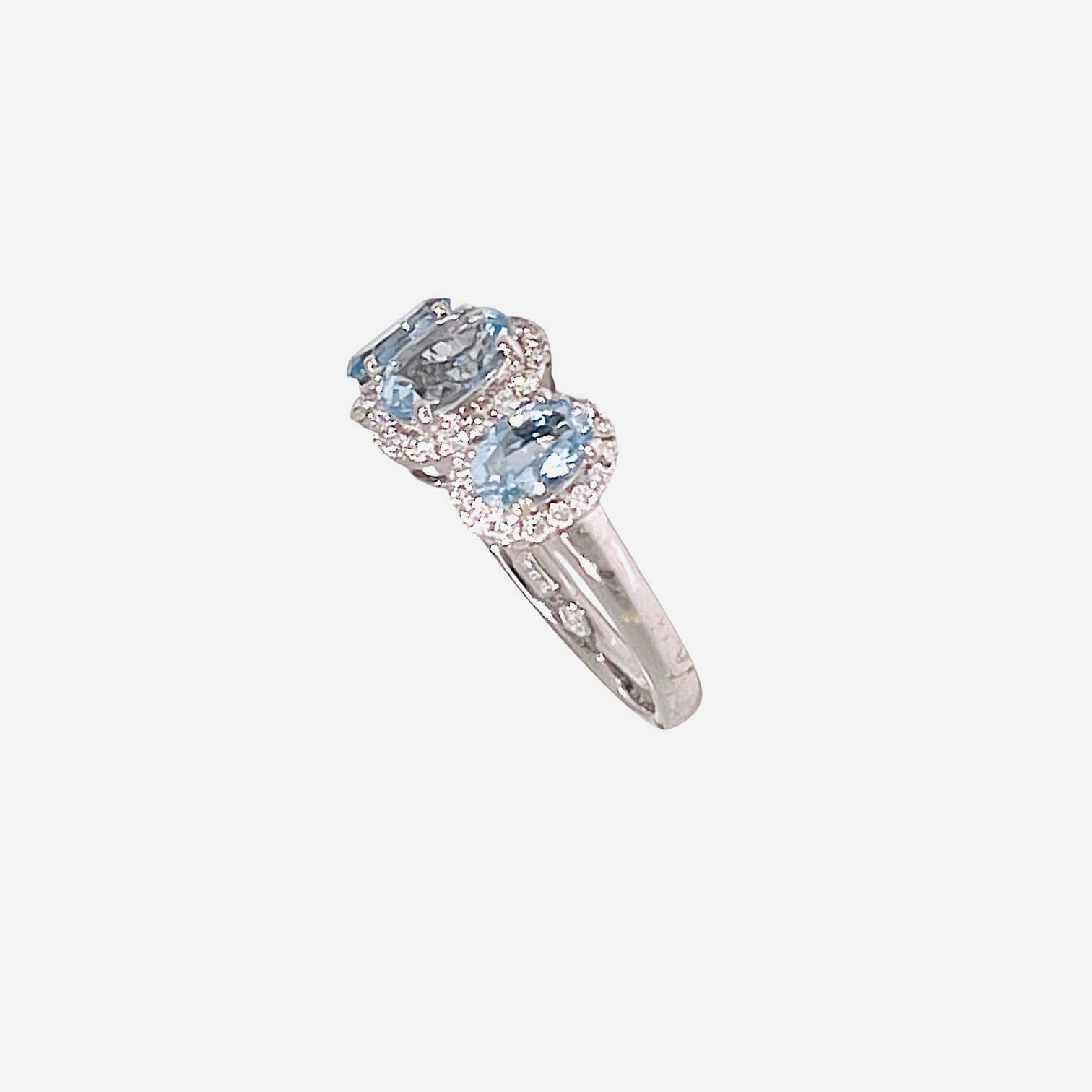 Anello acquamarina e diamanti TRILOGY Cipolla dal 1950 Gioiellieri COLLEZIONE BELLE EPOQUE, lavorazione artigianale; Montatura in oro bianco 750% 18 kt, Diamanti taglio brillante peso 0,28 ct colore F Purezza VS1 acquamarina peso 1,35 ct taglio ovale