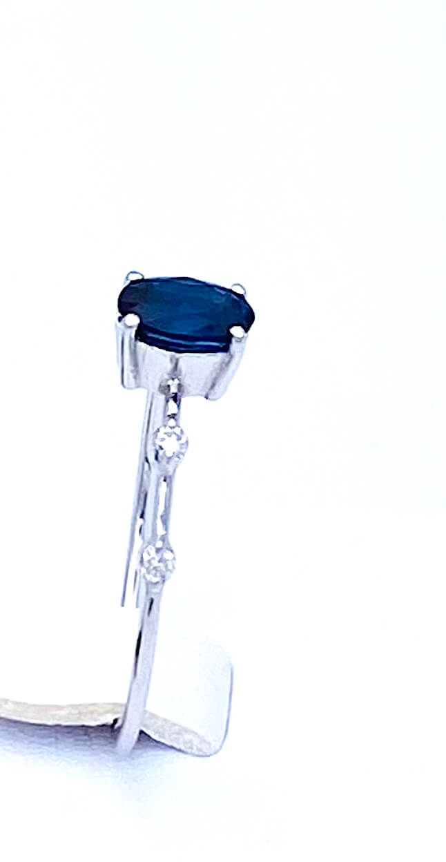 Anello con zaffiro e diamanti Cipolla dal 1950 Gioiellieri COLLEZIONE GEMME,Lavorazione artigianale; Montatura in oro bianco 750% 18 kt Zaffiro Taglio ovale peso 0,63 ct. Diamanti peso 0,07 ct, taglio brillante colore F purezza VS1