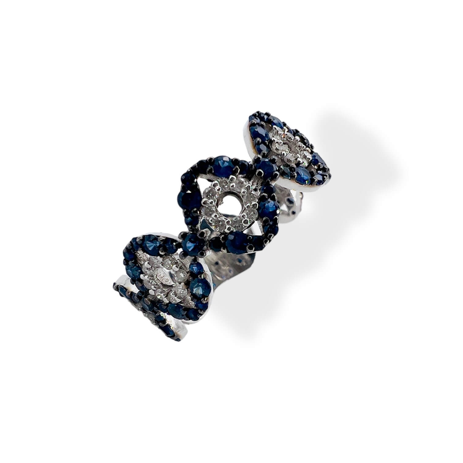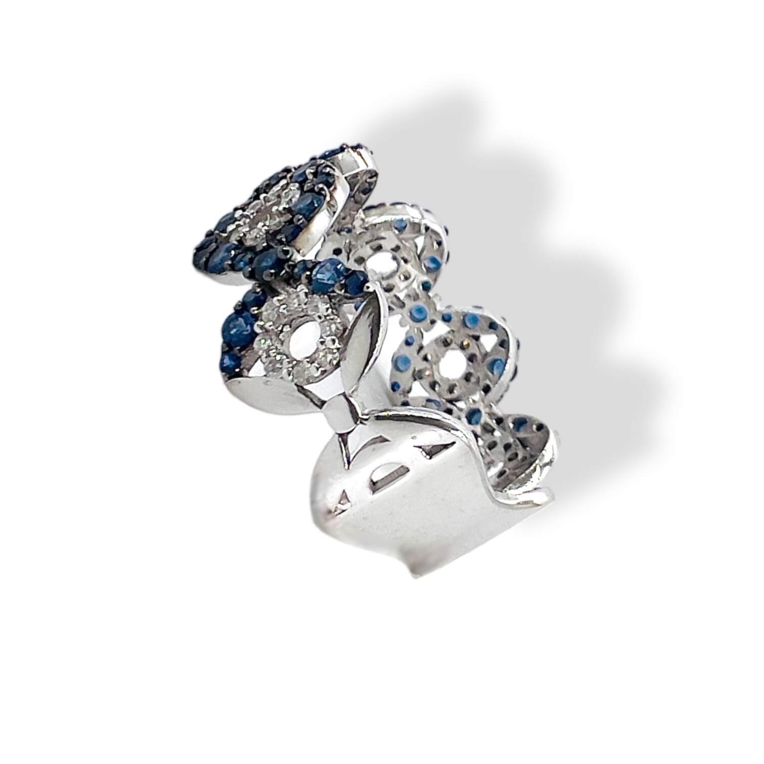 Anello fascia con zaffiri e diamanti in oro bianco 750% GEMME Zaffiri peso 0,93 Diamanti peso 0,25 Ct colore F purezza VS1