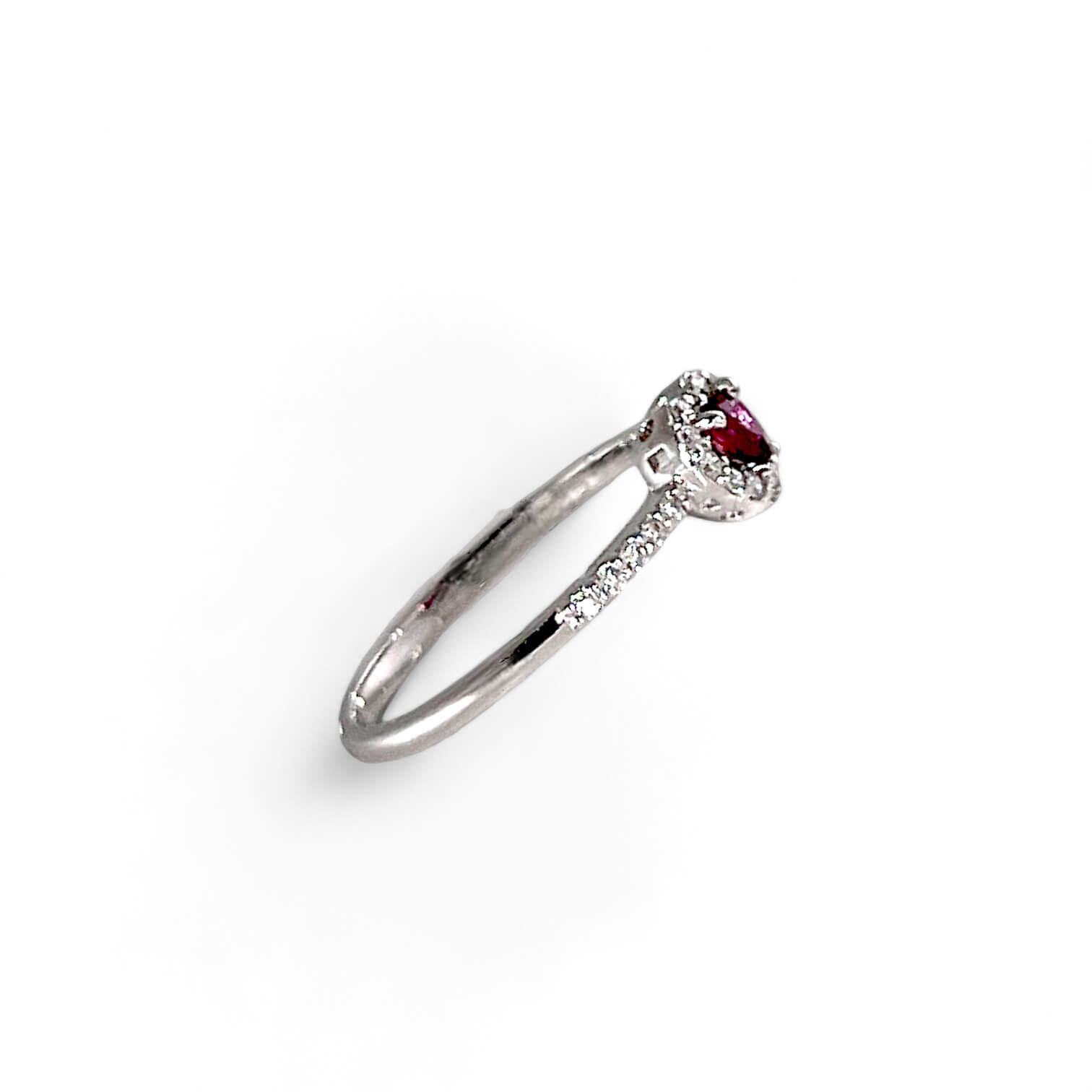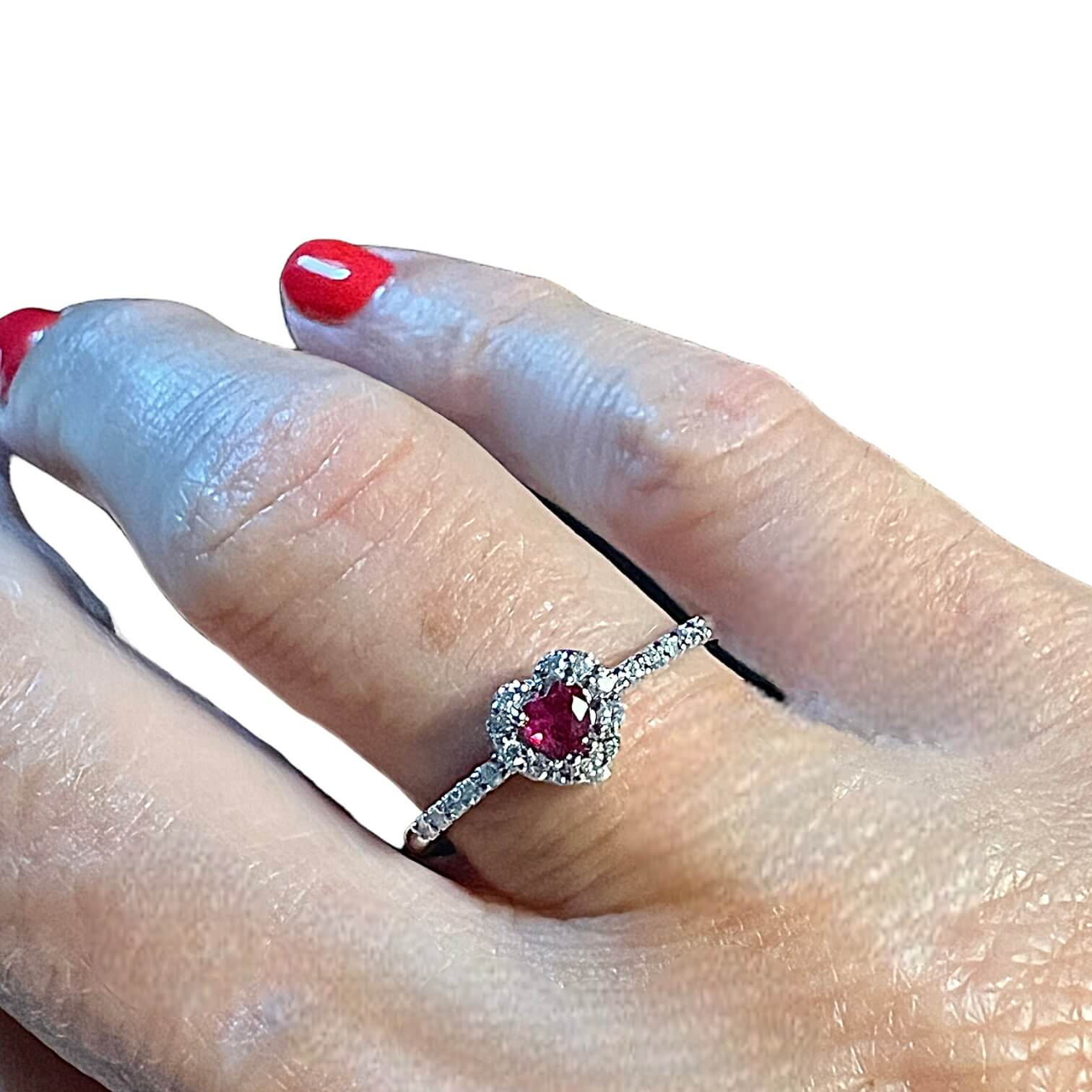 Anello con rubino e diamanti in oro bianco 18kt CUORE, Rubino taglio cuore peso 0,23 ct, Diamanti peso 0,14 Ct colore F purezza VS1 CIPOLLA DAL 1950 GIOIELLI ART. AN2821R