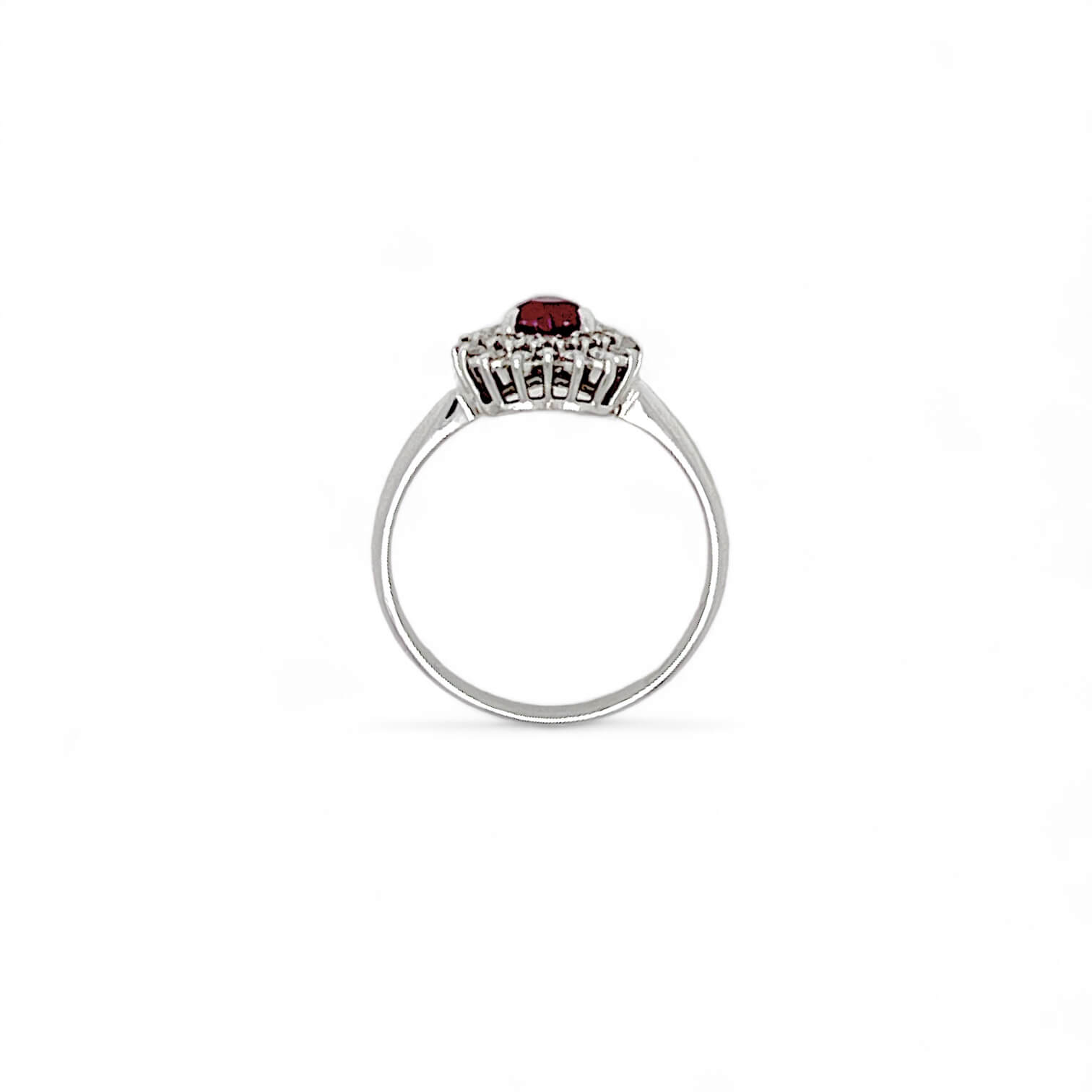 Anello con rubino e diamanti in oro bianco 750% CUORE Rubino peso 0,64 ct Diamanti peso 0,26 Ct colore F purezza VS1 CIPOLLA DAL 1950 GIOIELLI ART. AN2255