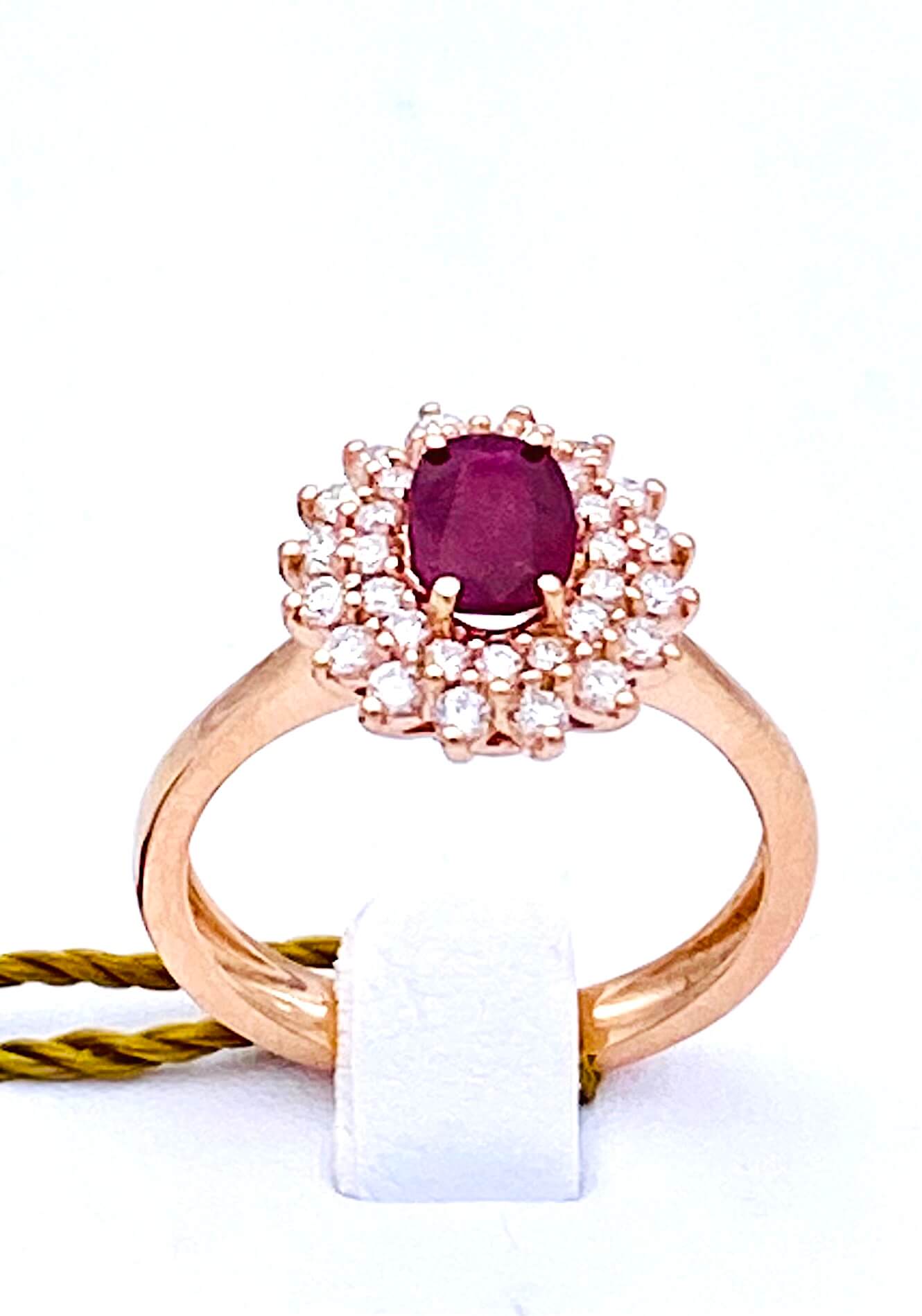 Anello con rubino e diamanti in oro rosa 750% 18 KT BON TON, Rubino peso 1,00 ct Diamanti peso 0,48 Ct colore F purezza VS1 CIPOLLA DAL 1950 GIOIELLI ART. AN2394-1