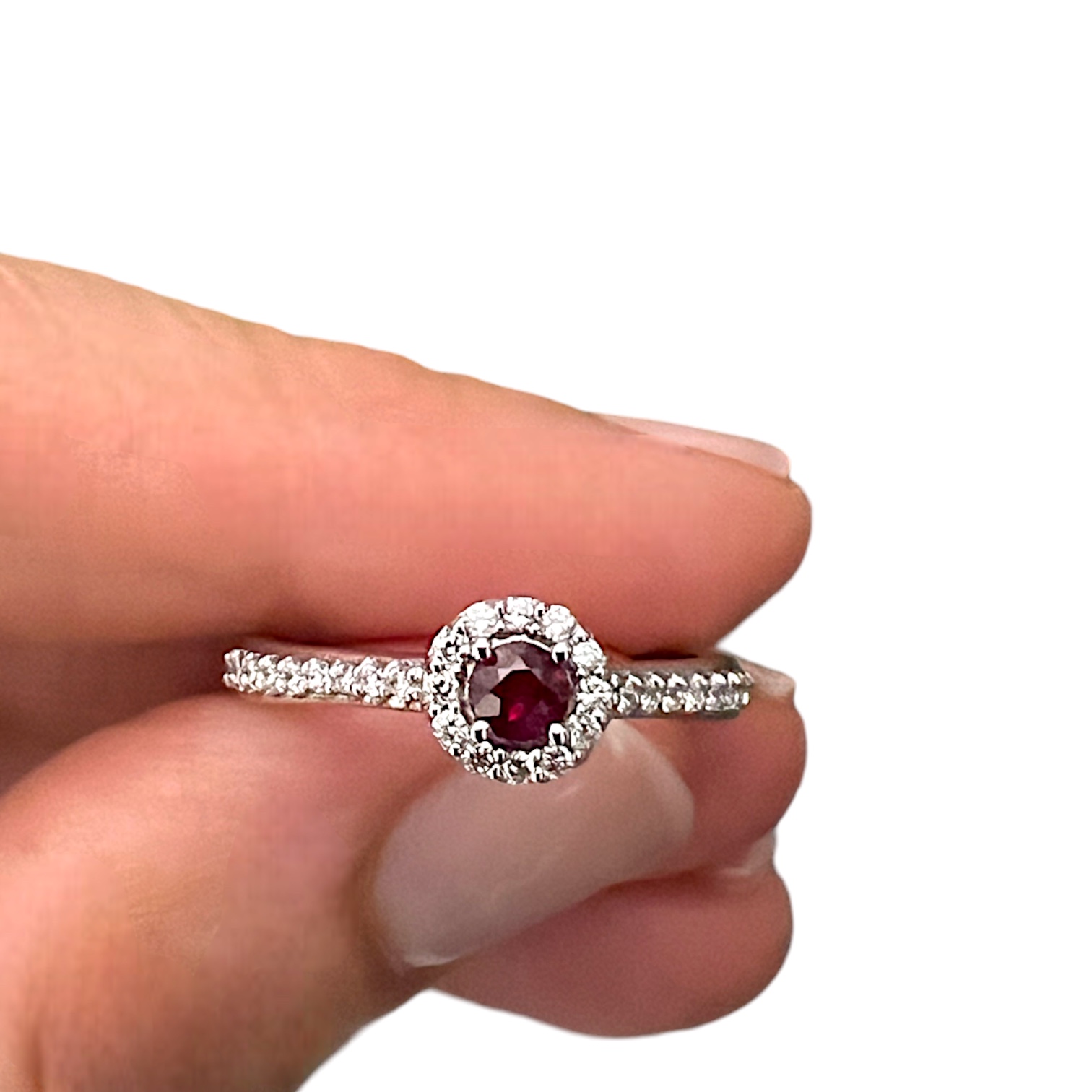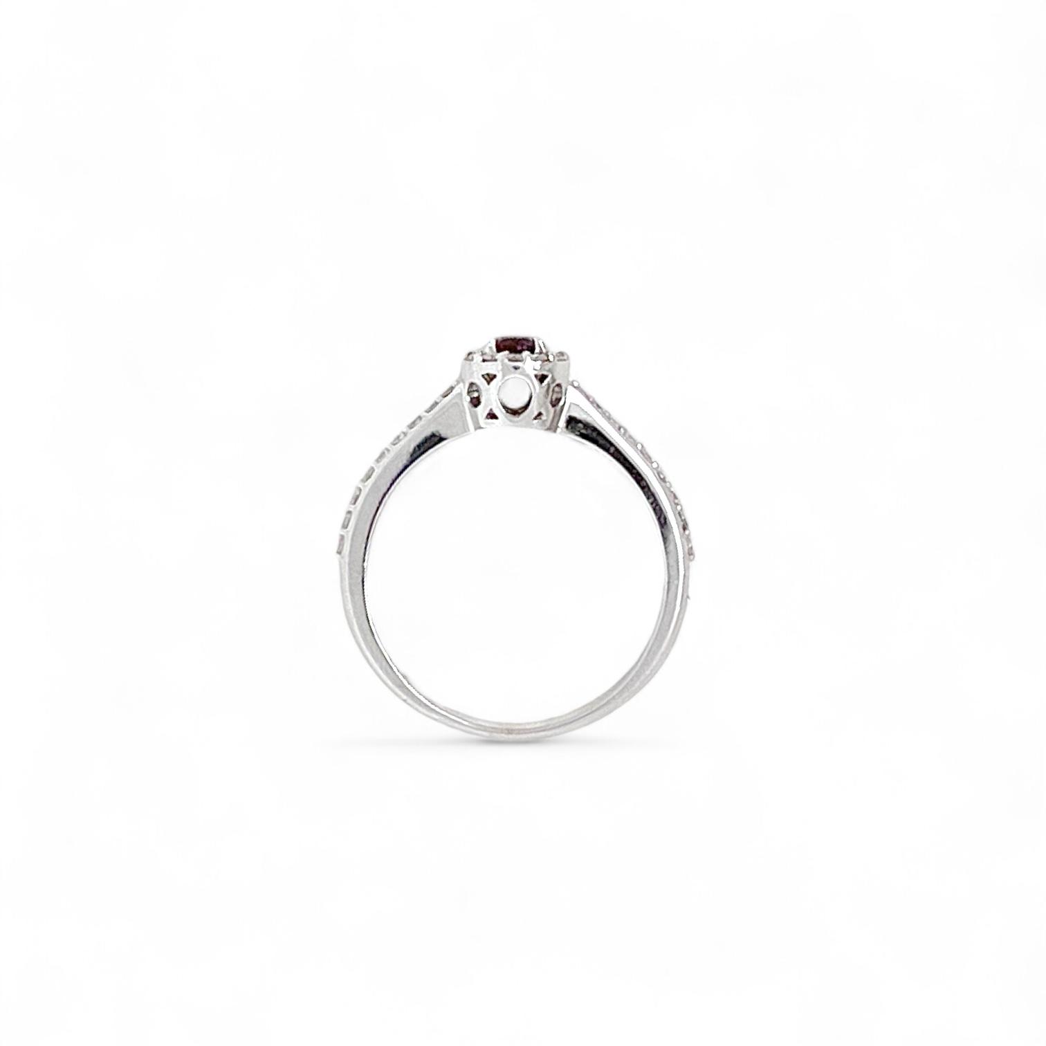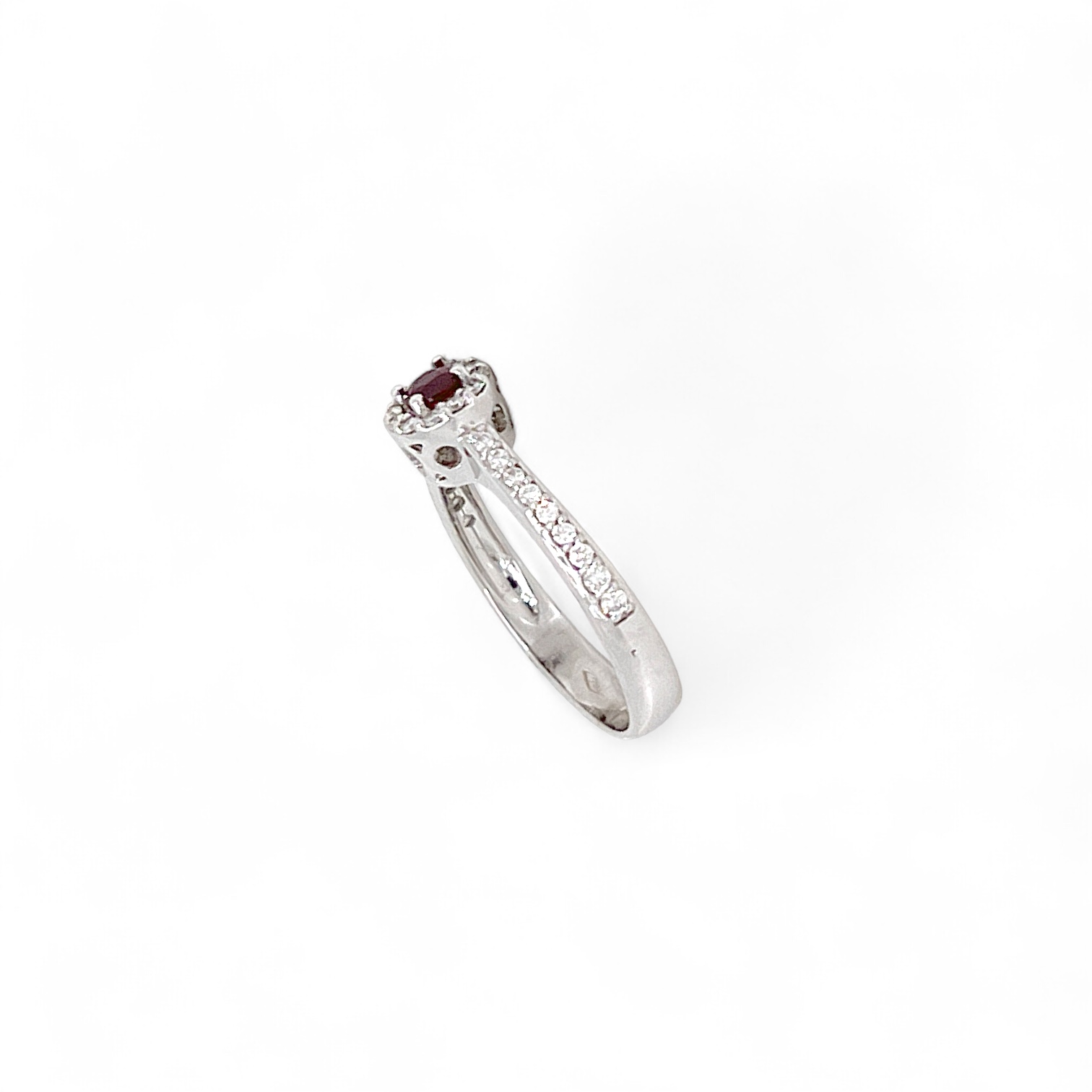 Anello rubino Cipolla dal 1950 Gioielli COLLEZIONE BELLE EPOQUE, lavorazione artigianale, montatura in oro bianco 750% 18 kt, diamanti 0,28 ct colore F purezza VS1 Rubino taglio rotondo 0,32 ct