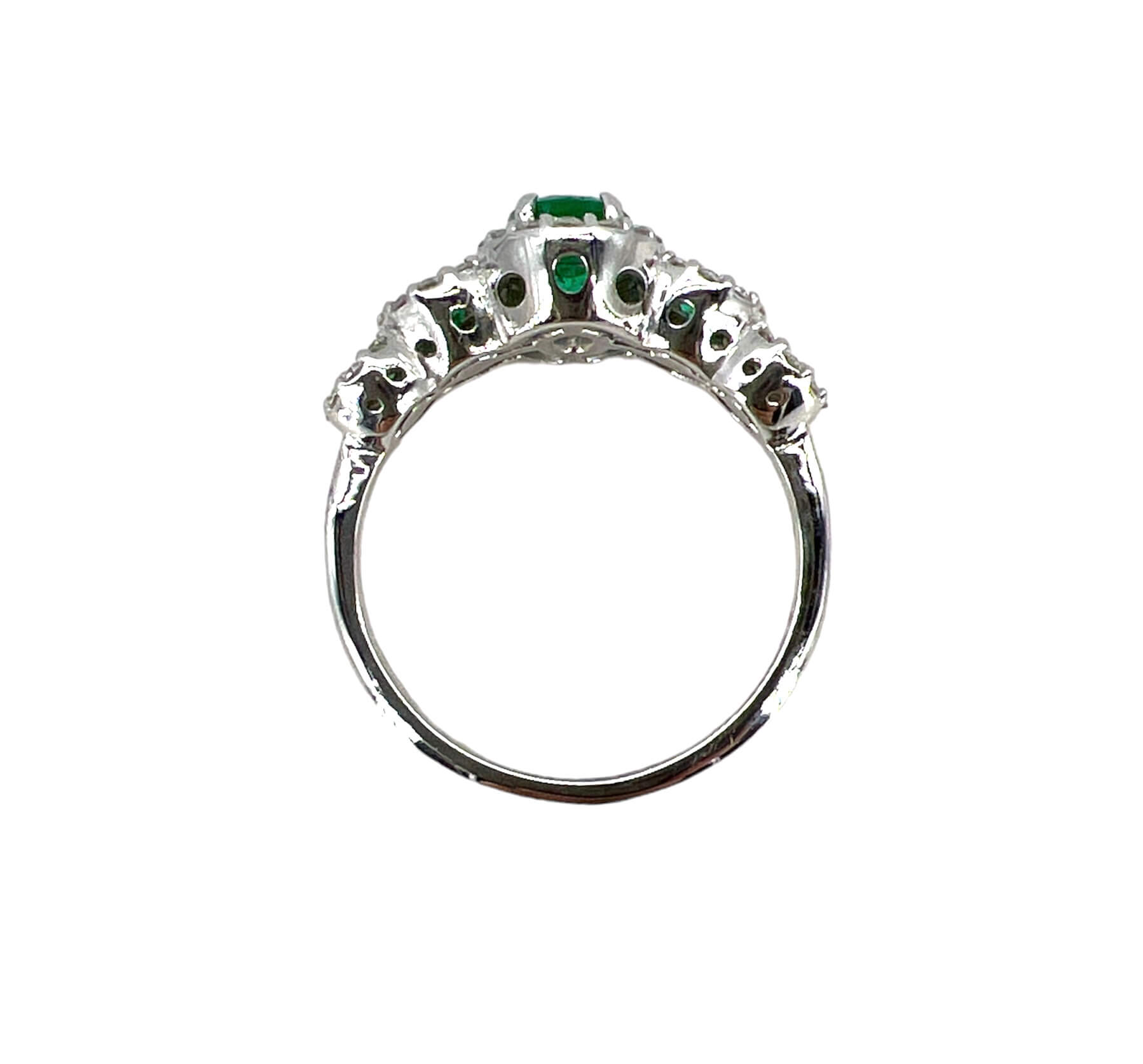 Anello veretta con smeraldi e diamanti Cipolla dal 1950 Gioiellieri COLLEZIONE BELLE EPOQUE lavorazione artigianale, Montatura in oro bianco 750% Smeraldi provenienza Colombia peso 0,60 ct Diamanti taglio brillante peso 0,24 Ct colore F purezza VS1