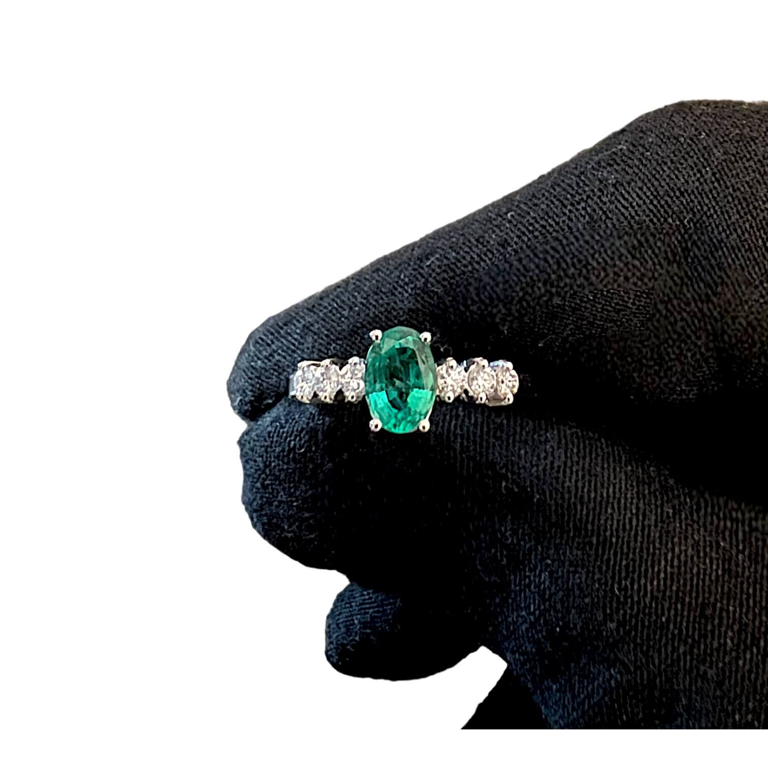 Anello con smeraldo e diamanti GEMME oro bianco 750%. Smeraldi caratura 0,40 Diamanti peso 0.14 Ct colore F purezza VS1