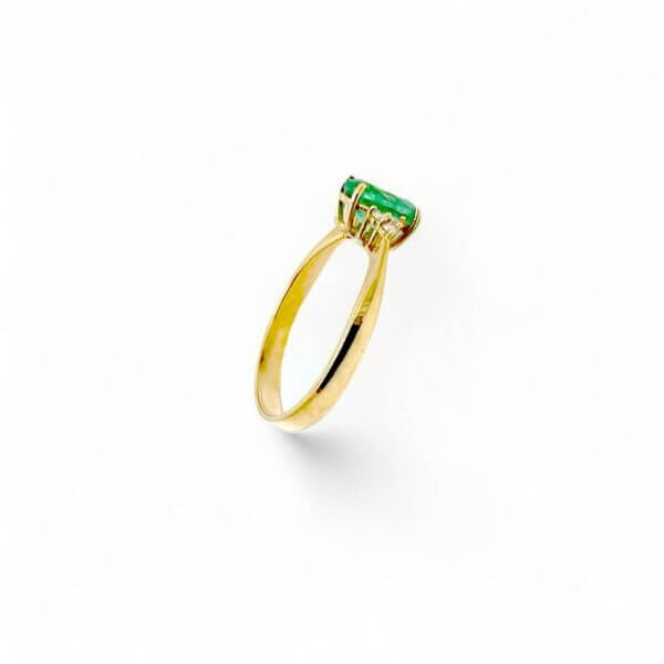 Anello smeraldo e diamanti Cipolla dal 1950 Gioiellieri COLLEZIONE GEMME lavorazione artigianale, montatura in oro giallo 750% 18 kt Smeraldo peso 0,92 ct taglio ovale, Diamanti taglio brillante colore F purezza VS1 0,09 ct