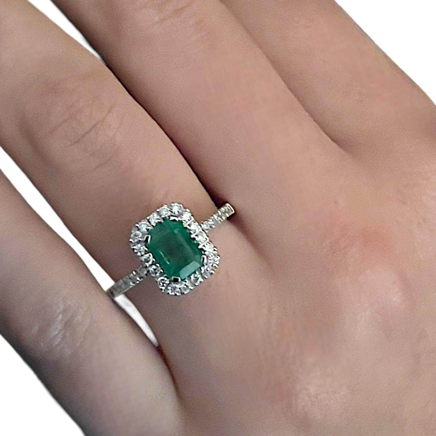 L’Anello Smeraldo e Diamanti, Art. AN2320, della Collezione BELLE EPOQUE di Cipolla dal 1950 Gioiellieri, è una dichiarazione di raffinatezza e stile senza tempo. La montatura in oro bianco 18 Kt 750% è l’incantevole cornice per uno smeraldo proveniente dalla Colombia, un gioiello della natura da 1,11 ct. Il taglio smeraldo, con la sua eleganza unica, dona all’anello una preziosità senza pari.