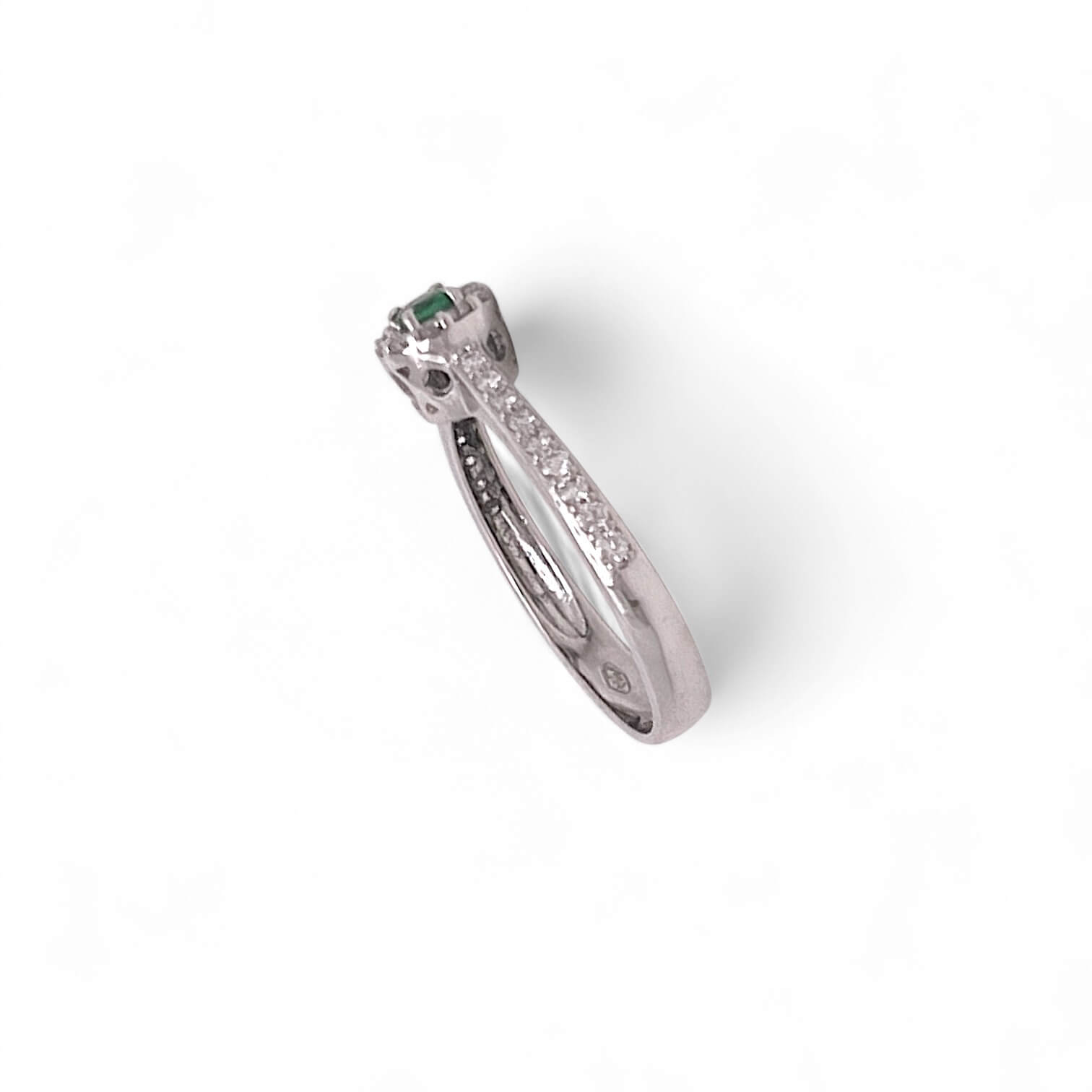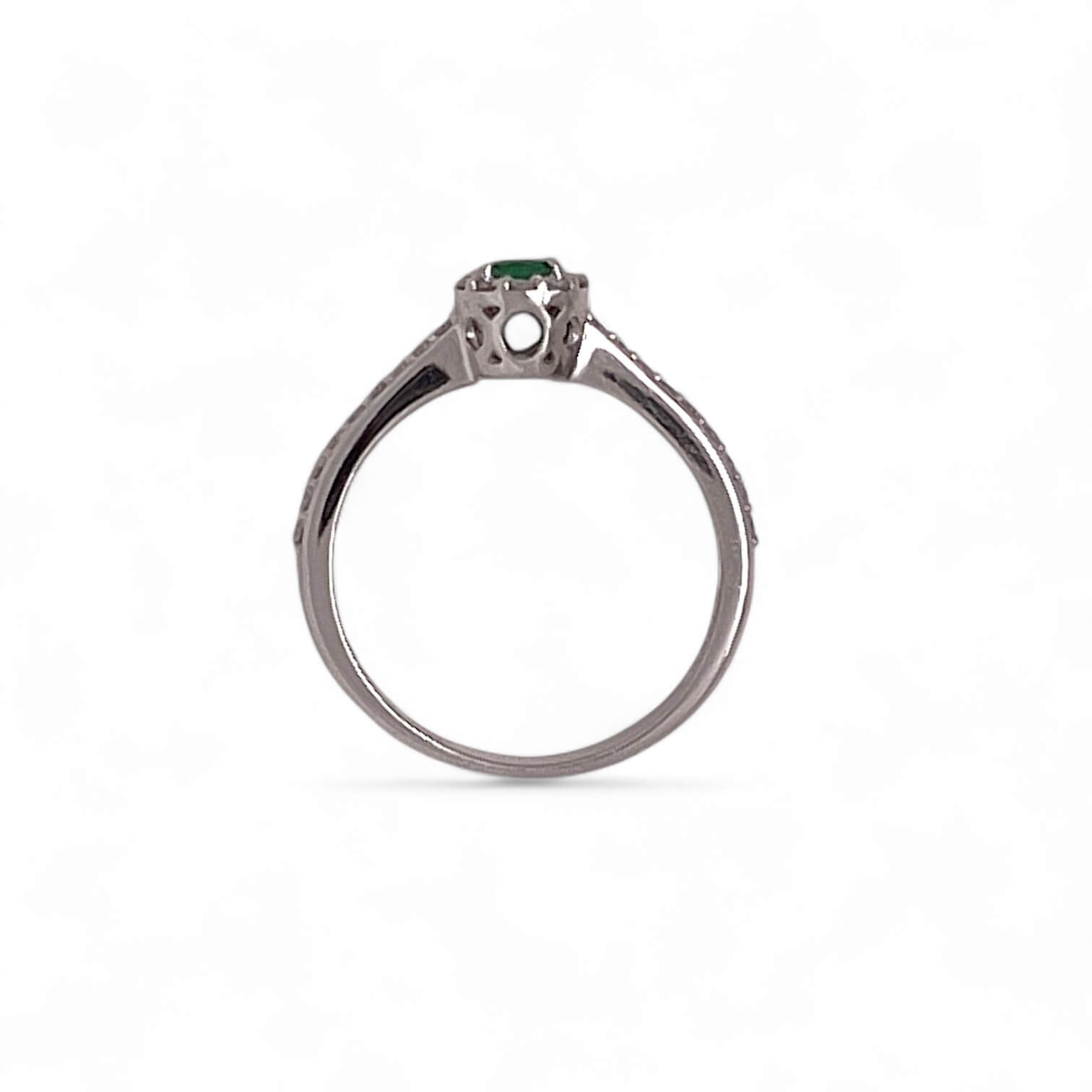 Anello smeraldo e diamanti Cipolla dal 1950 Gioiellieri COLLEZIONE BELLE EPOQUE Montatura in oro bianco 750% 18 kt Diamanti 0,27 ct taglio brillante colore F purezza VS1 Smeraldo 0,09 ct taglio rotondo