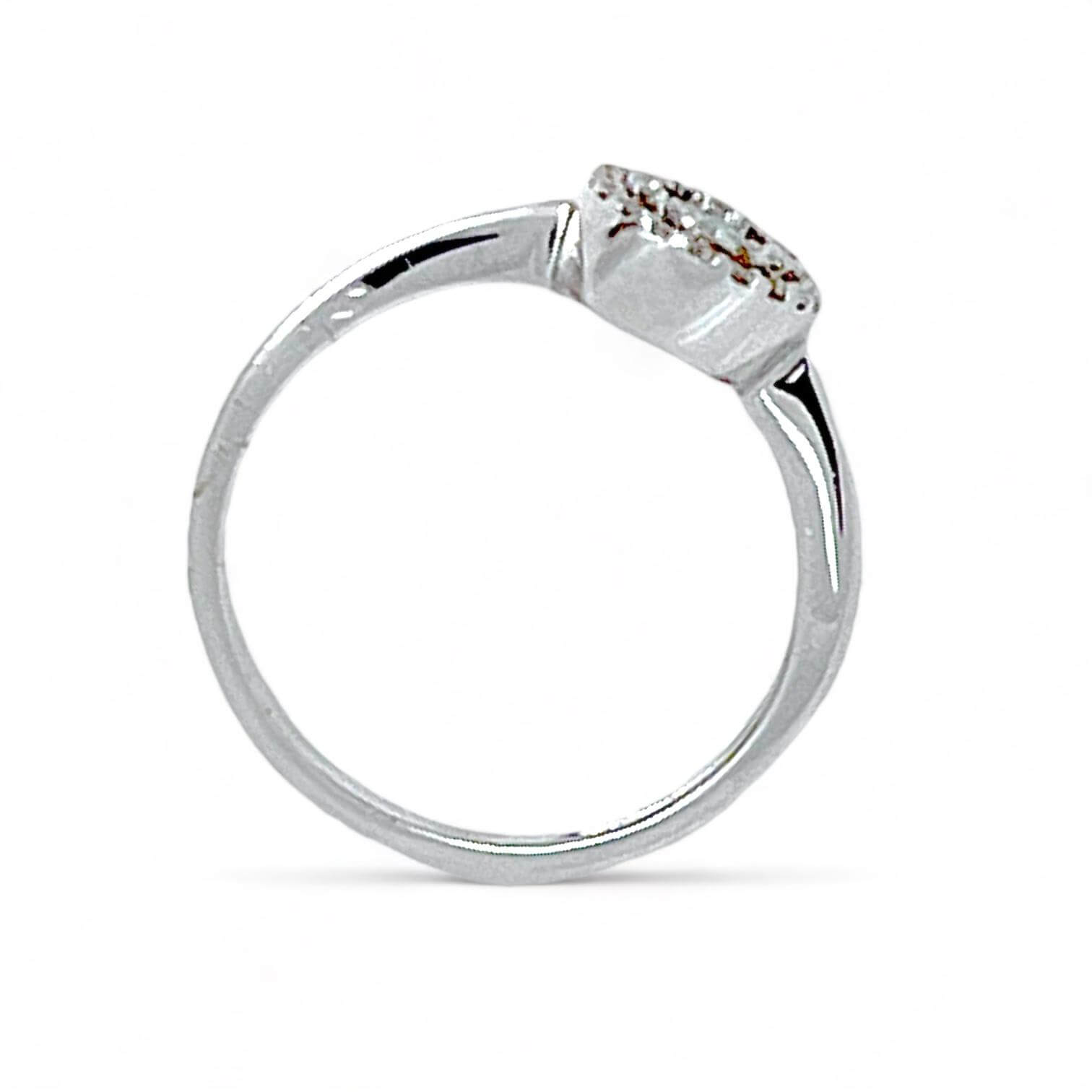 Gli splendidi diamanti, con un peso totale di 0,14 Ct, sono incastonati con maestria nella montatura, aggiungendo una scintillante luminosità. Il loro colore F e la purezza SI1 sottolineano la qualità impeccabile delle pietre, mentre il taglio brillante contribuisce a creare un effetto luminoso e suggestivo.