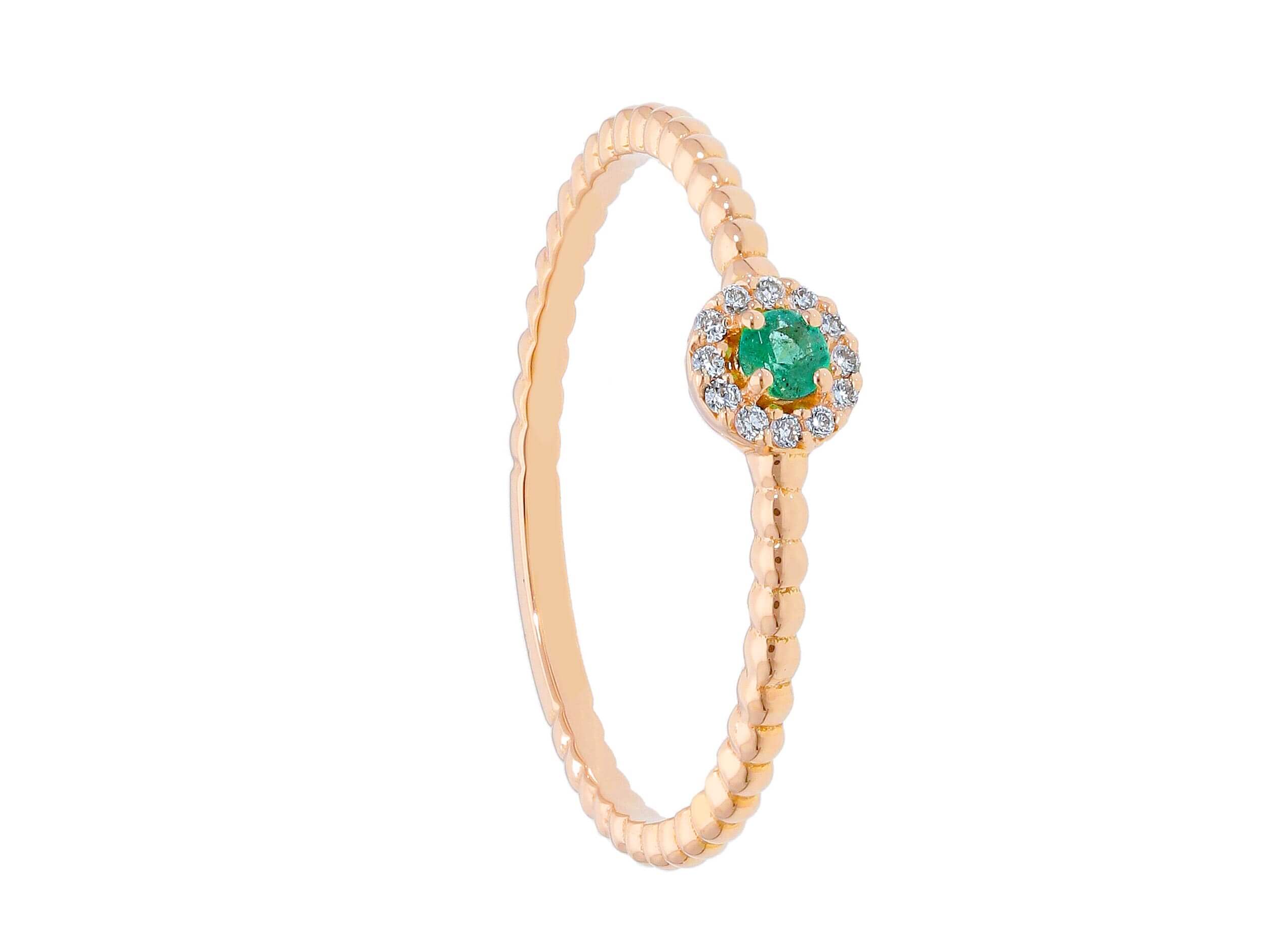 Anello con smeraldo e diamanti Cipolla dal 1950 Gioiellieri COLLEZIONE BELLE EPOQUE, lavorazione artigianale; Montatura in oro rosa 18 Kt 750% Smeraldo Colombia peso 0,05 ct taglio rotondo Diamanti taglio brillante peso 0,04 Ct colore F purezza VS2