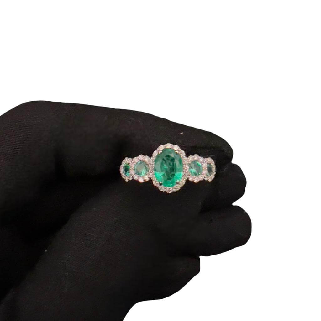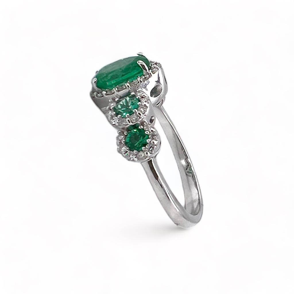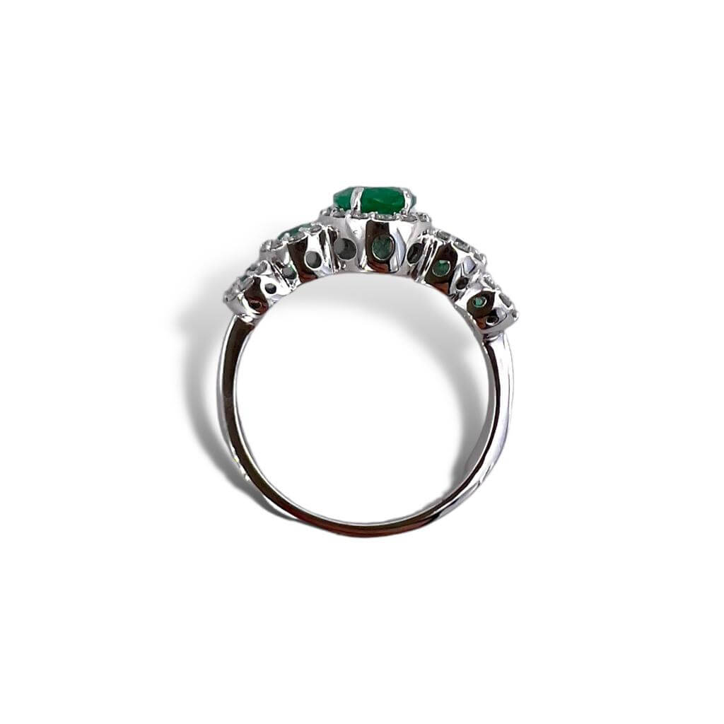 Anello smeraldo oro bianco 750% CIPOLLA DAL 1950 GIOIELLI COLLEZIONE BELLE EPOQUE diamanti 0,32ct colore F/vs1 smeraldi Colombia 1,35ct taglio ovale e rotondo.