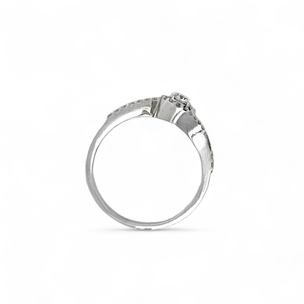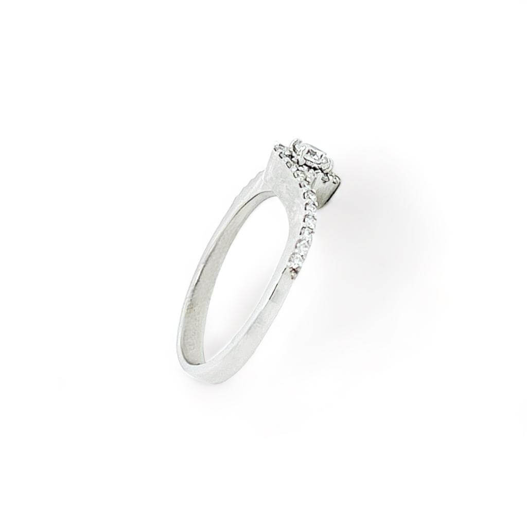Anello solitario con diamanti in oro bianco 750% VORTICI Diamante centrale taglio round brilliant peso 0,15 F/VS1 diamanti di contorno 0,20 ct Colore F purezza SI1