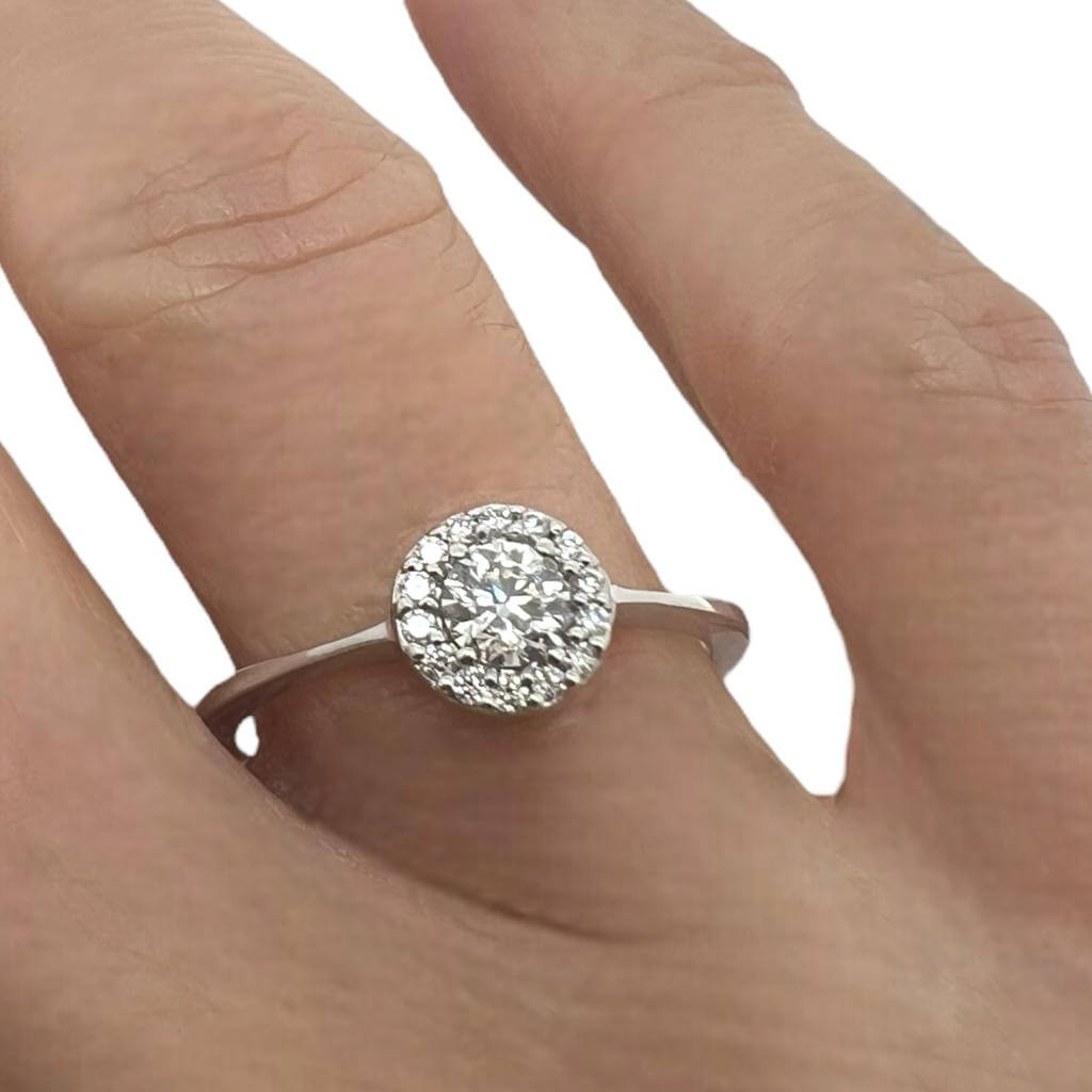 Esplora l’eleganza senza tempo con l’Anello Solitario SETA Diamanti Oro Bianco di Cipolla dal 1950 Gioiellieri. Appartenente alla raffinata Collezione SETA, questo anello in oro bianco 750% è una dichiarazione di stile sottile e sofisticato. Il diamante centrale da 0,30 ct, circondato da una corolla di diamanti, incarna l’arte artigianale di alta qualità.