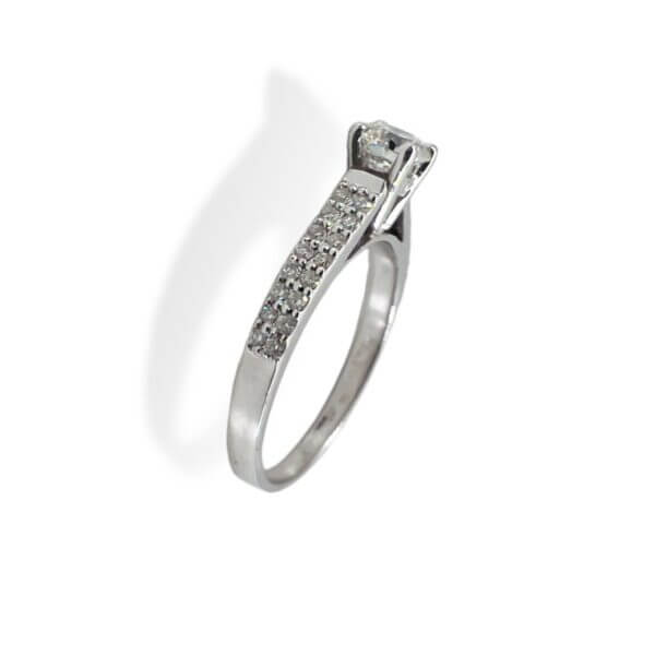 Anello solitario in oro bianco 750% LOVE diamante centrale 0,20 ct colore F purezza VS2,diamanti a contorno 0,20 ct colore F purezza VS2 Cipolla dal 1950 gioielli art. AN1527-1