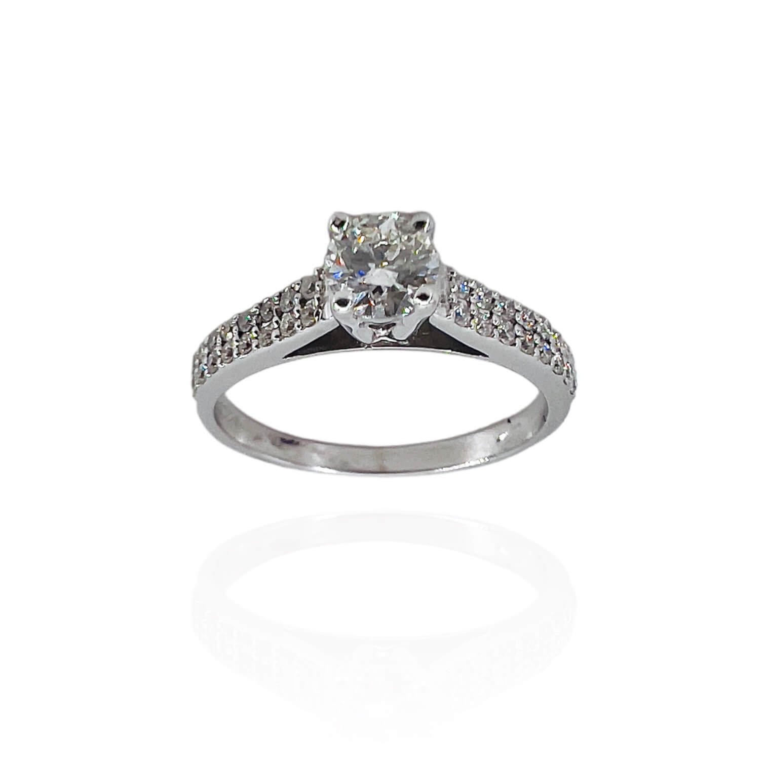 Anello solitario Cipolla dal 1950 Gioiellieri COLLEZIONE LOVE, lavorazione artigianale; montatura in oro bianco 750%, Diamante centrale 0,20 ct colore F Purezza VS2, Diamanti a contorno 0,20 ct colore F purezza VS2