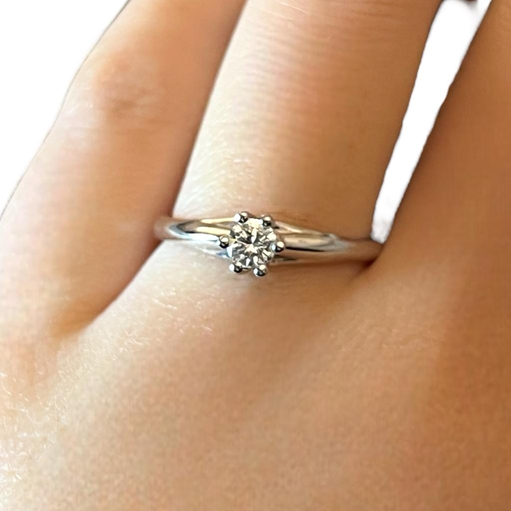 Anello solitario di diamanti in oro bianco 750% Diamante peso 0,24 ct, taglio brillante colore F purezza VS1.