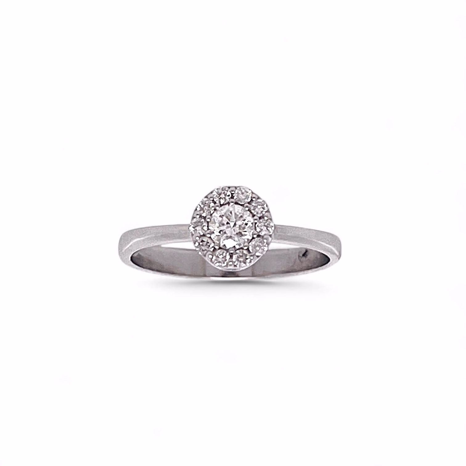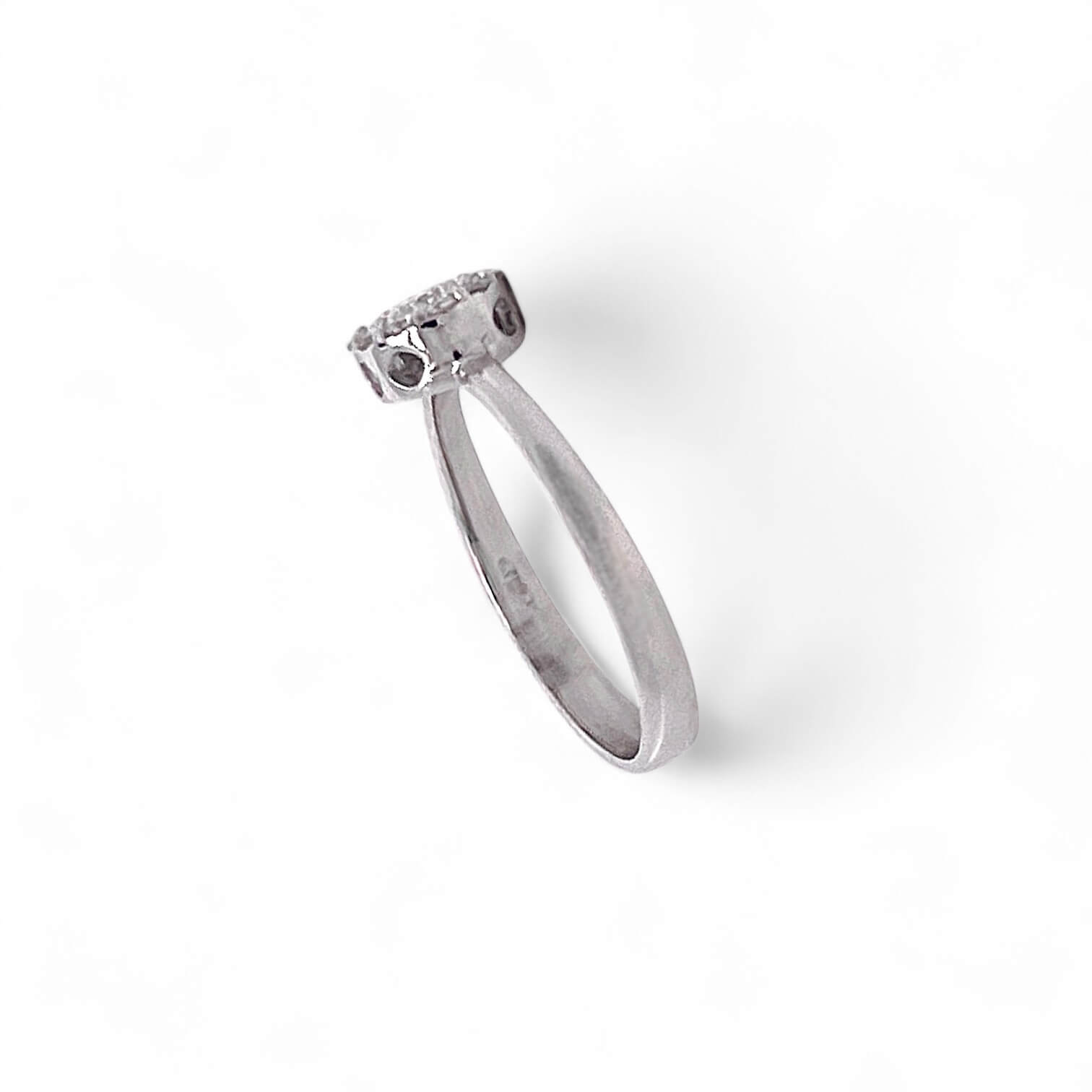Anello solitario di diamanti NARCISO lavorazione artigianale in oro bianco 750%, diamante centrale 0,23 ct taglio brillante colore F purezza VSI, diamanti a contorno ct 0,14