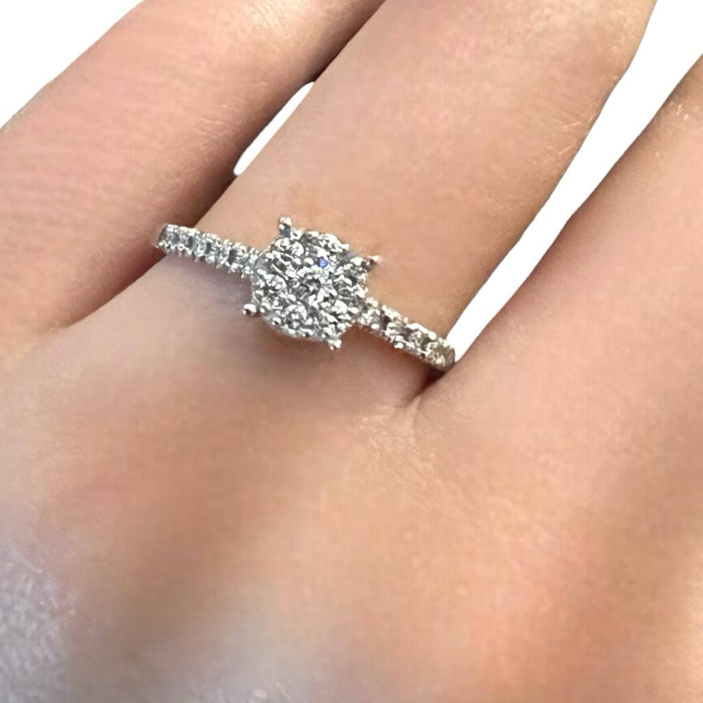 Anello solitario di diamanti Cipolla dal 1950 Gioiellieri COLLEZIONE NARCISO lavorazione artigianale; Montatura in oro bianco 750%, diamante centrale 0,14 ct taglio brillante colore F purezza VSI